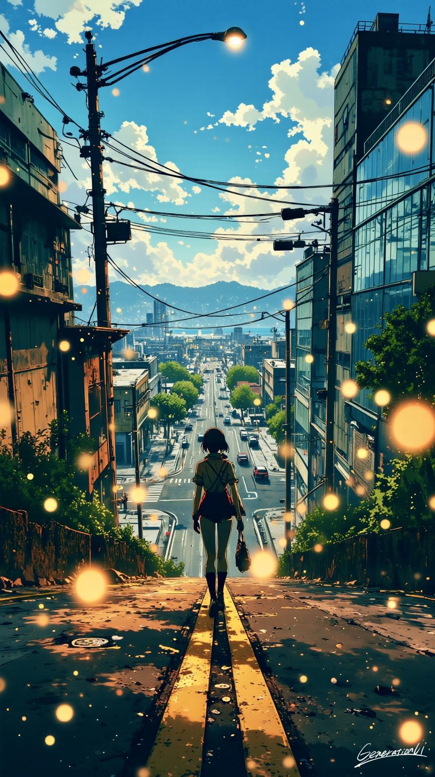 坂道の向こうに広がる街/スマホ壁紙アーカイブ