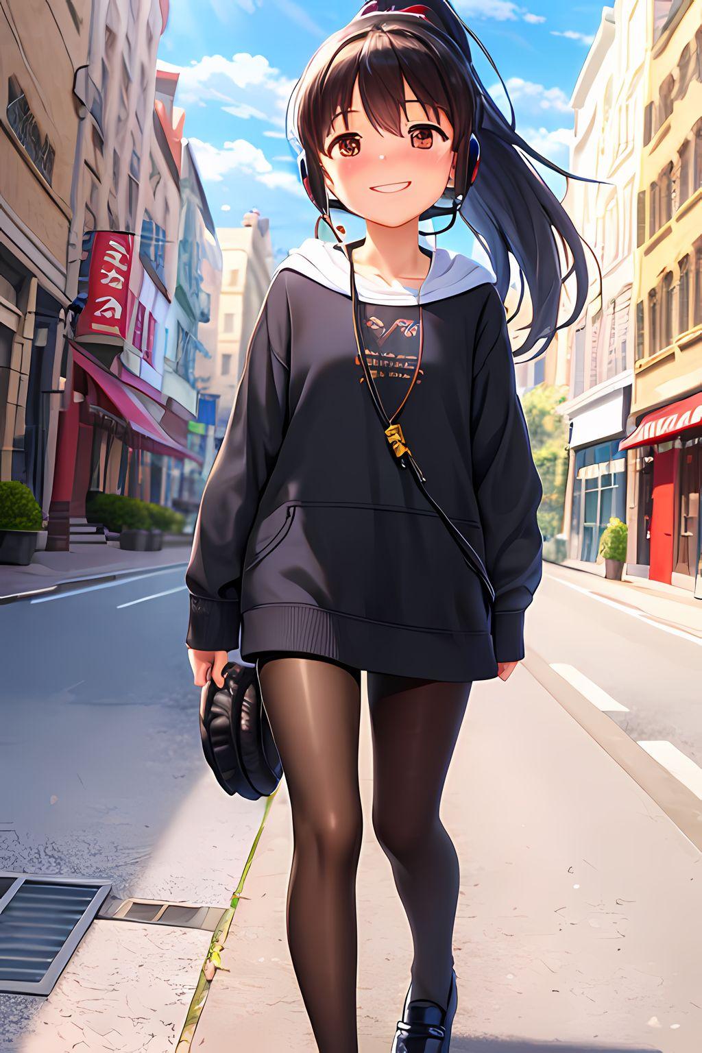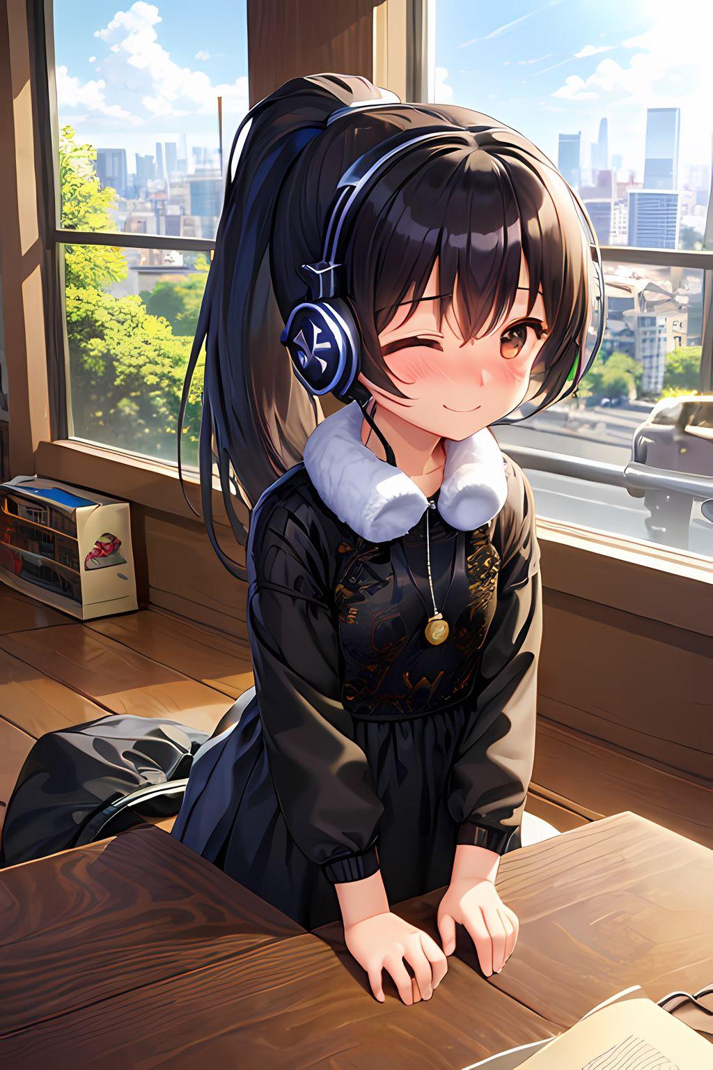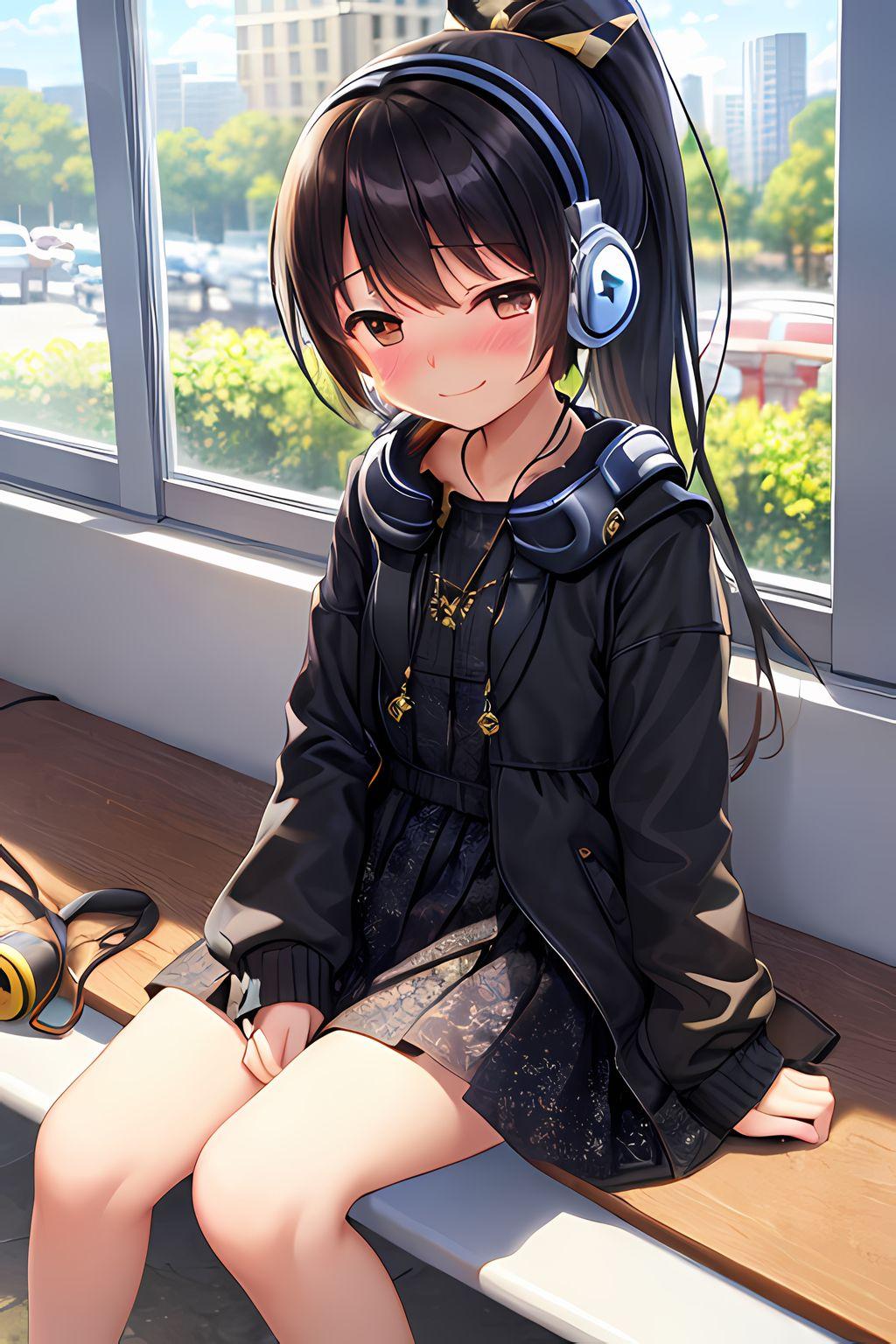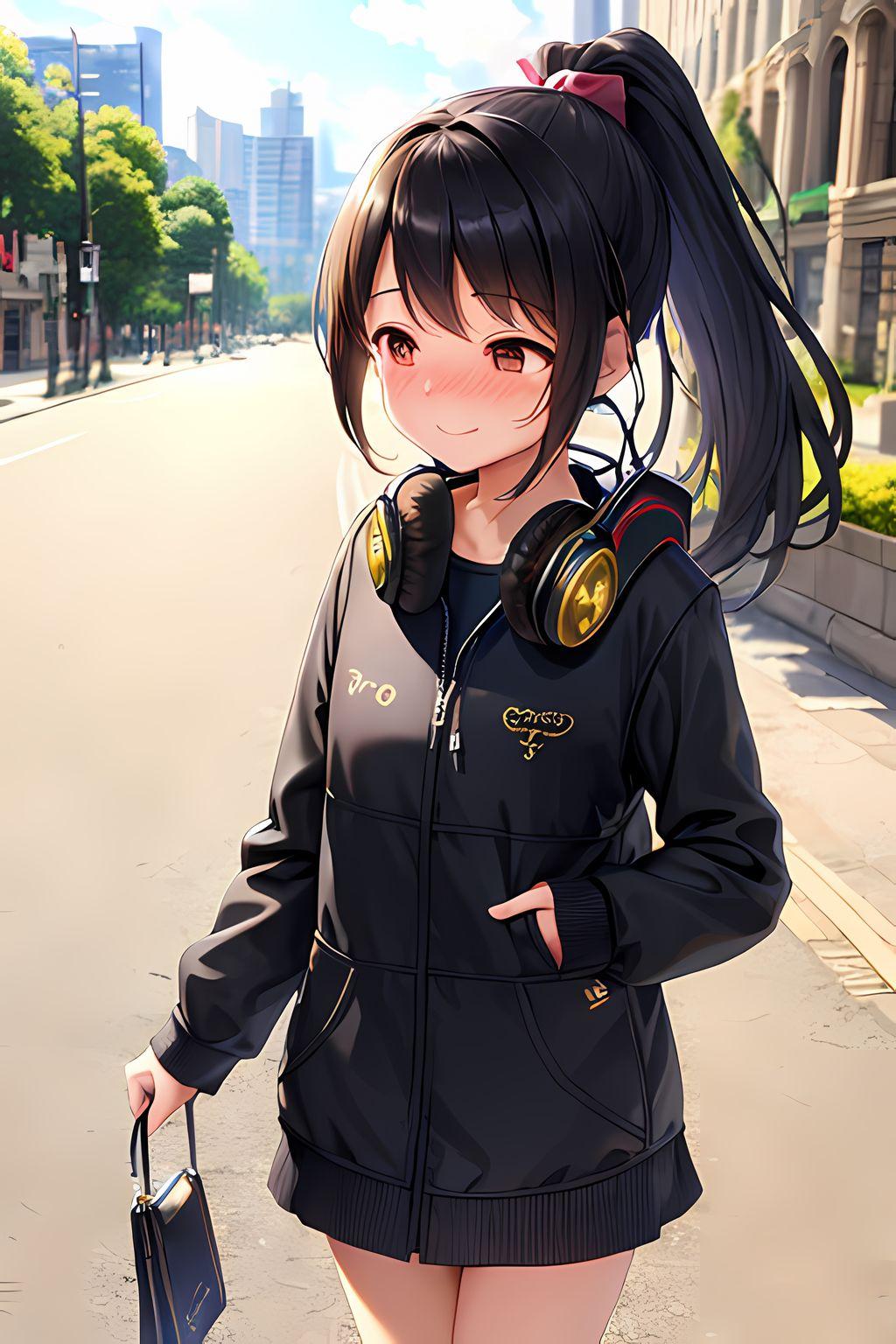 女の子はいつもの黒髪ポニーの茶瞳っ娘(お目々奇麗Ver)