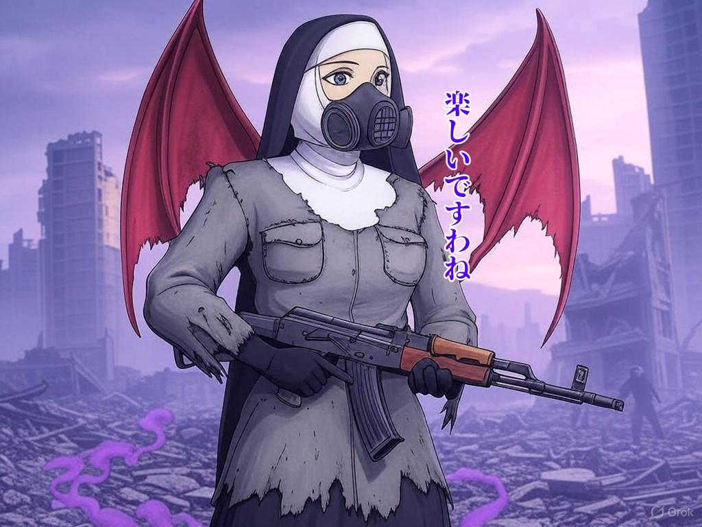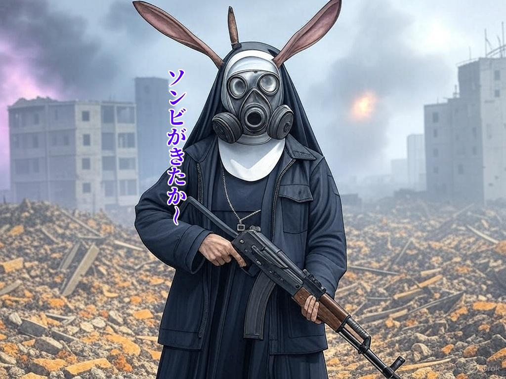周囲に御傘のウイルスによって感染しゾンビになった者達が、彼女、独奏エンダアを襲わんと迫りくる。