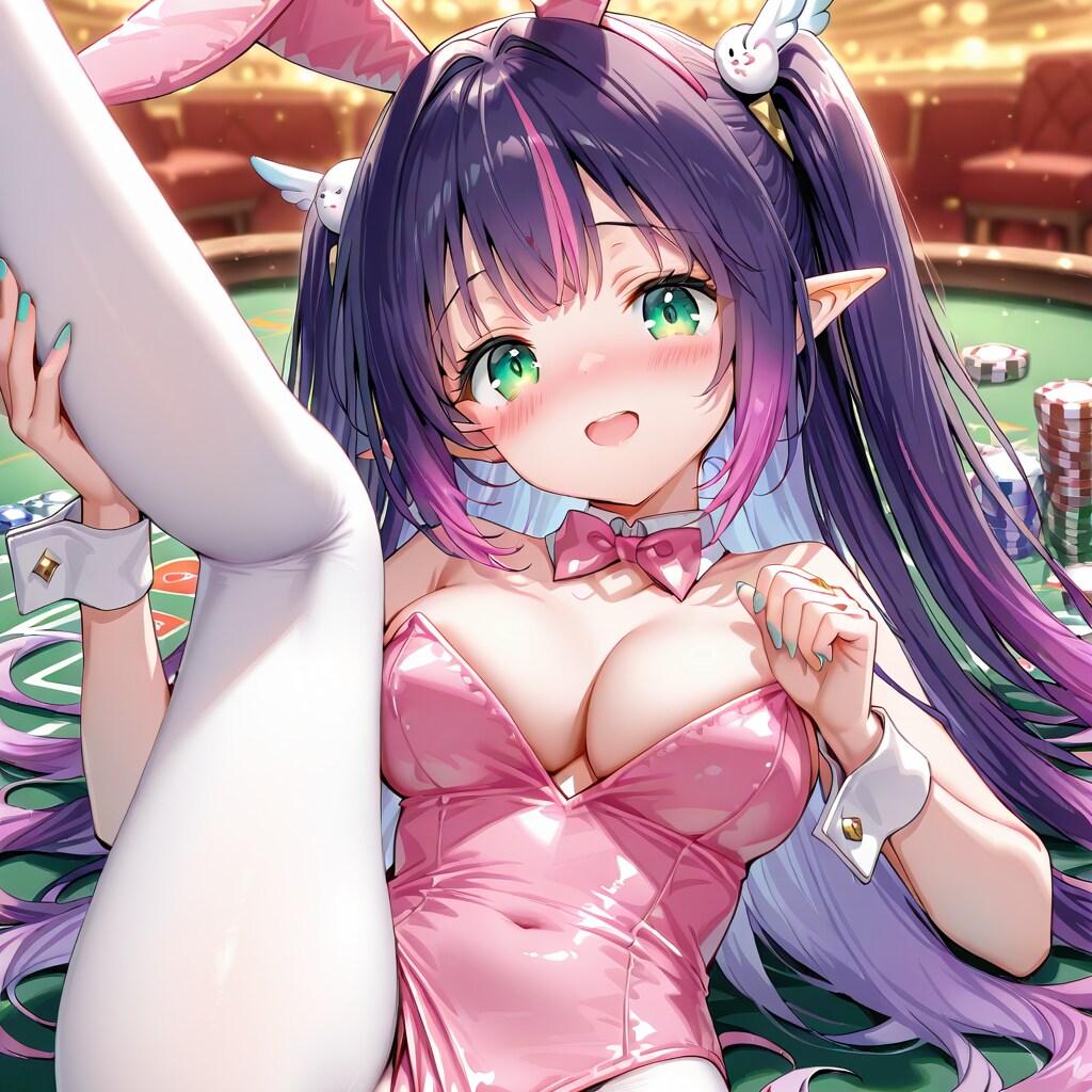 ちちぷい生成でサンプルプロンプト通りに作ったら髪色が安定しなかったので2・3枚目は別キャラになってますがお許しください。