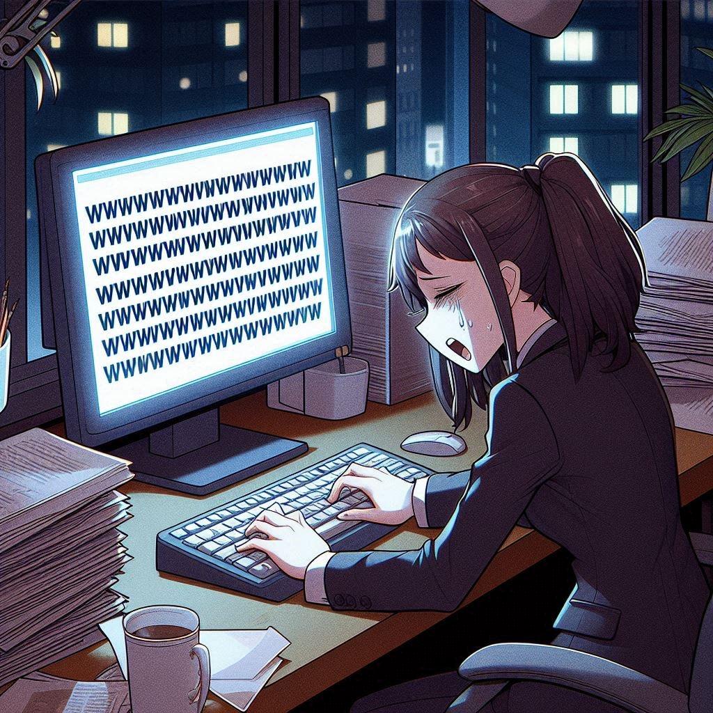 残業中朦朧として[w]キーを押し続けたOLちゃん