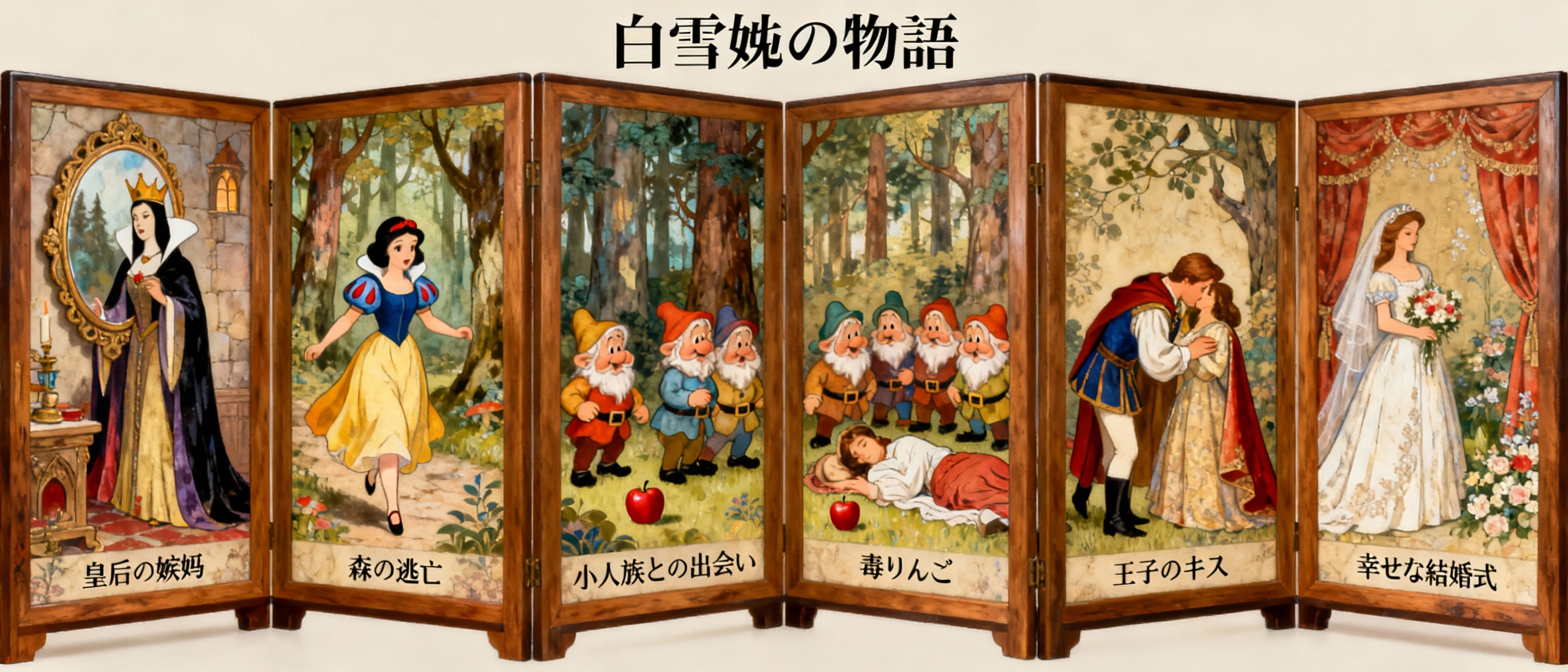 あの「毒りんご」の童話のストーリーを屏風絵で