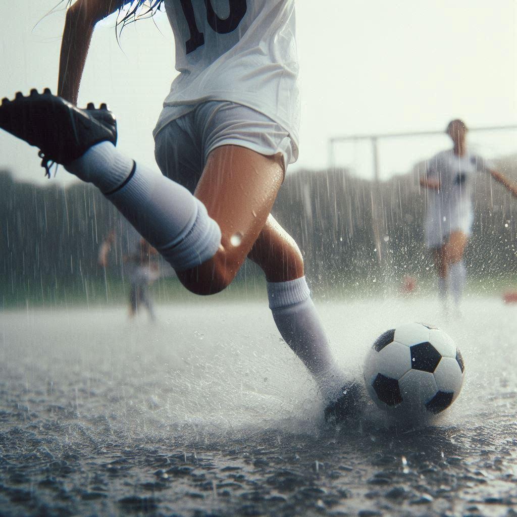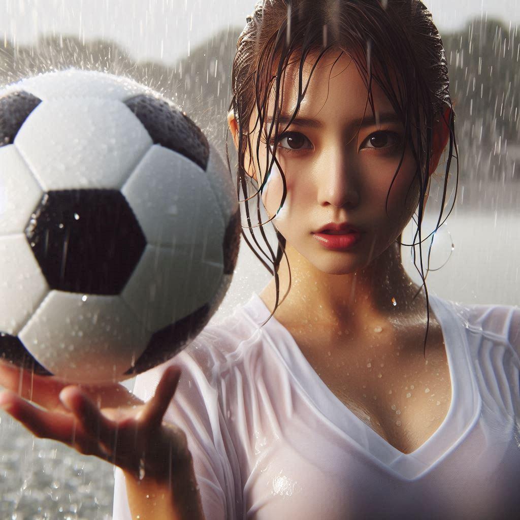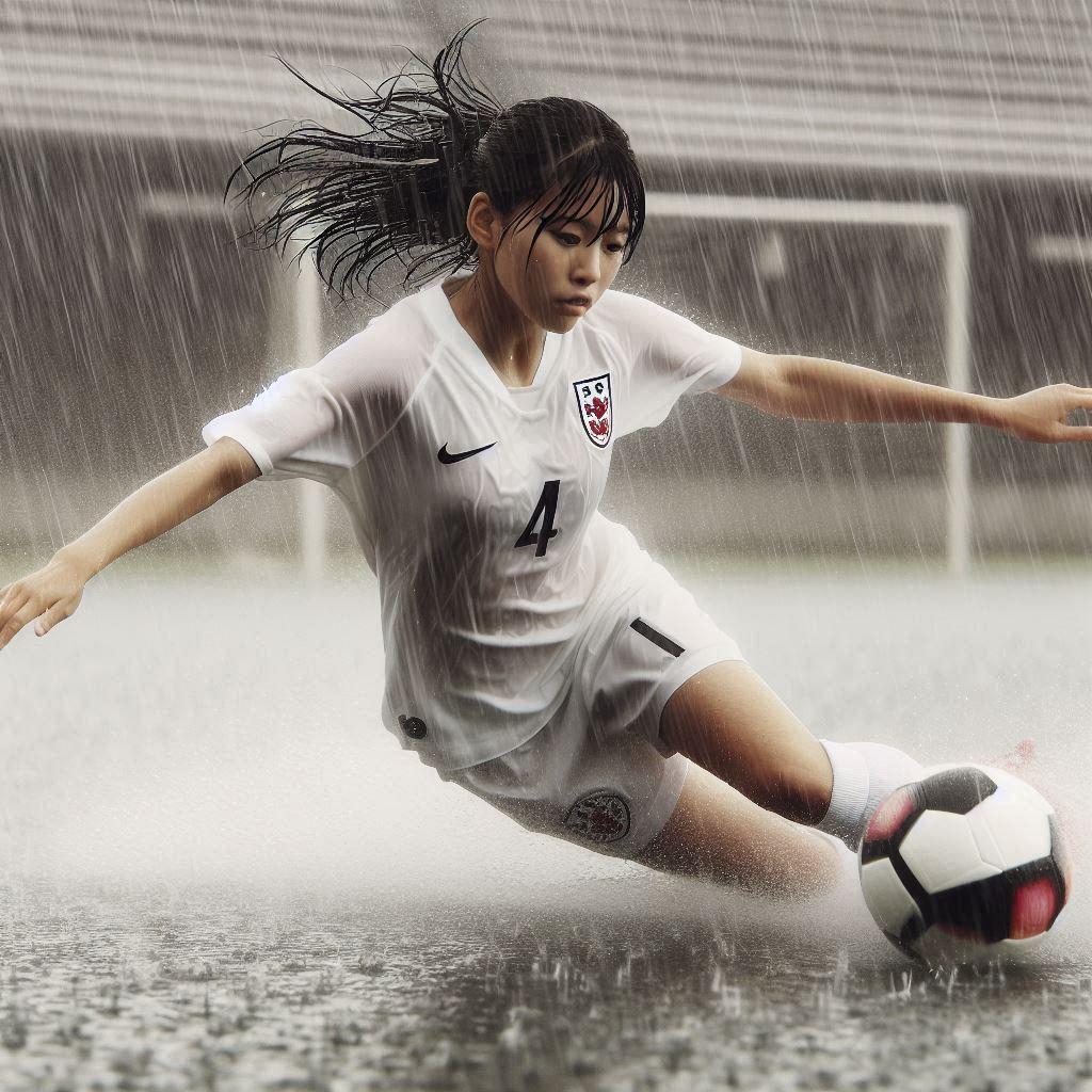 雨の中でサッカー