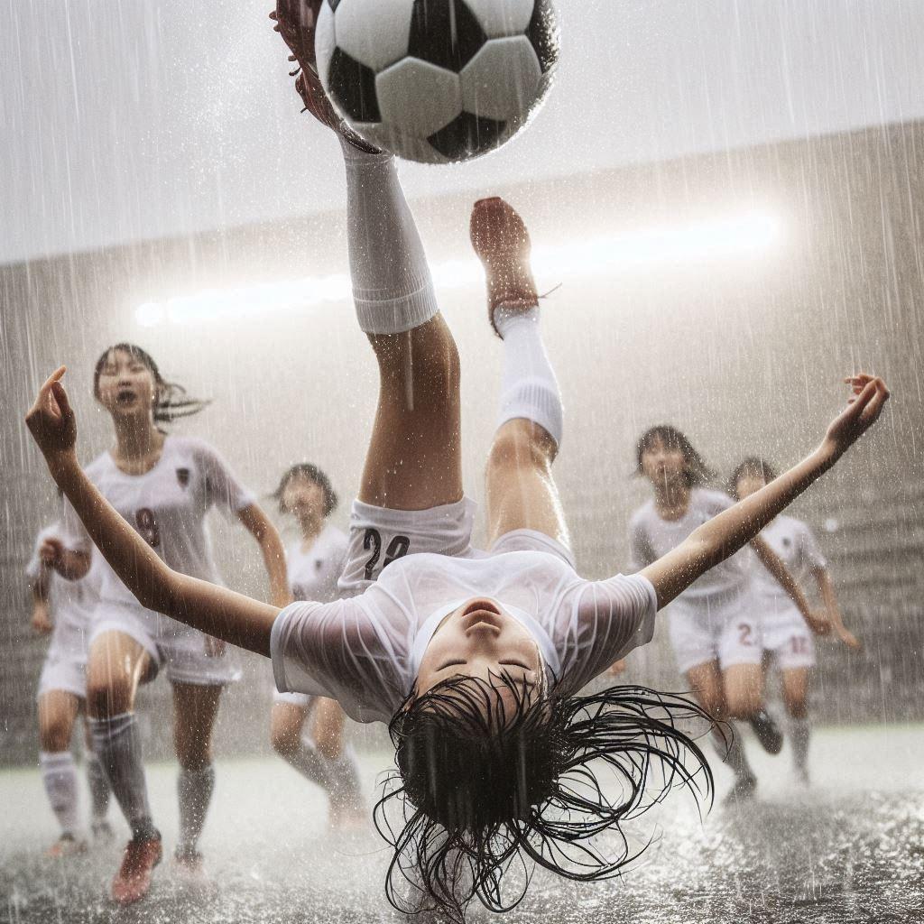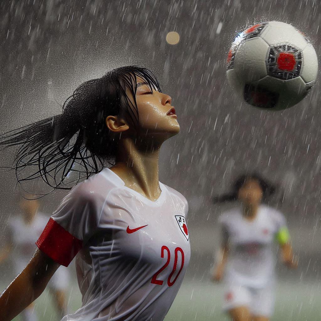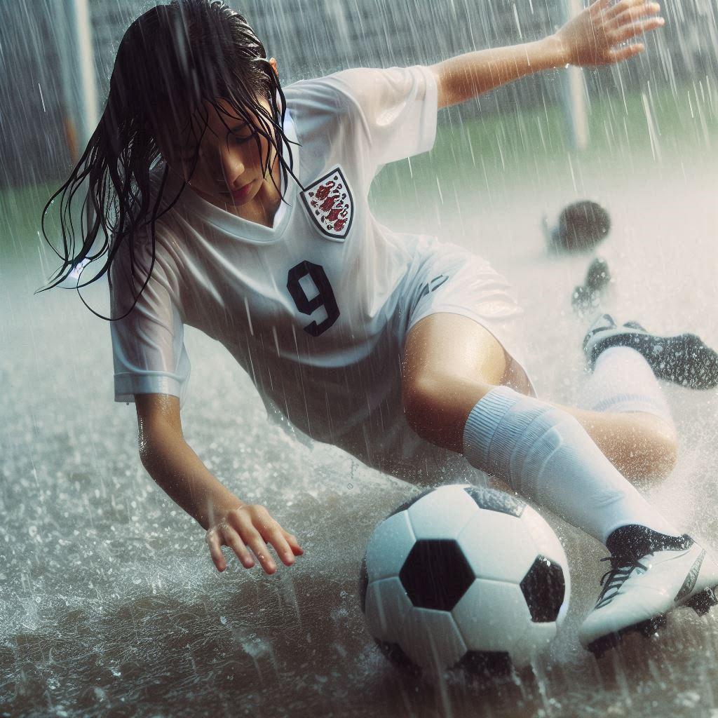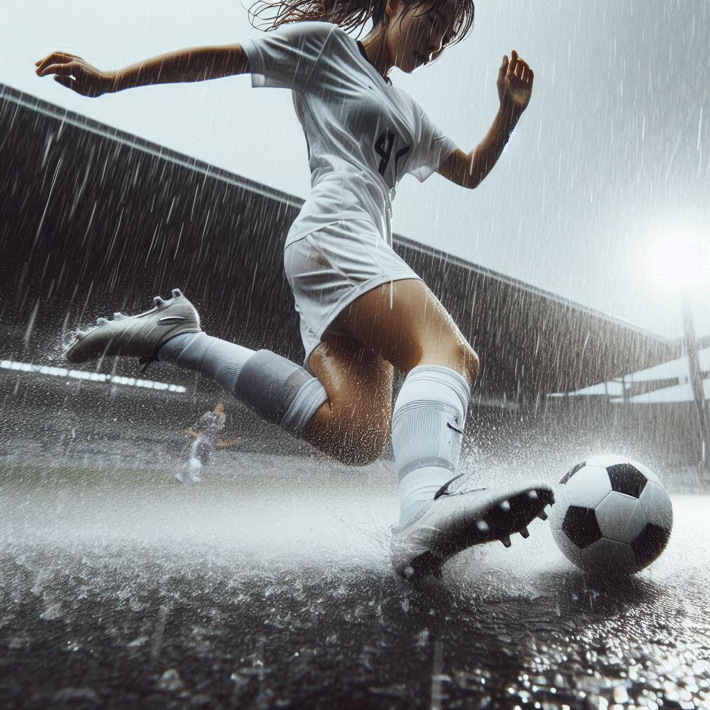 雨の中でサッカー