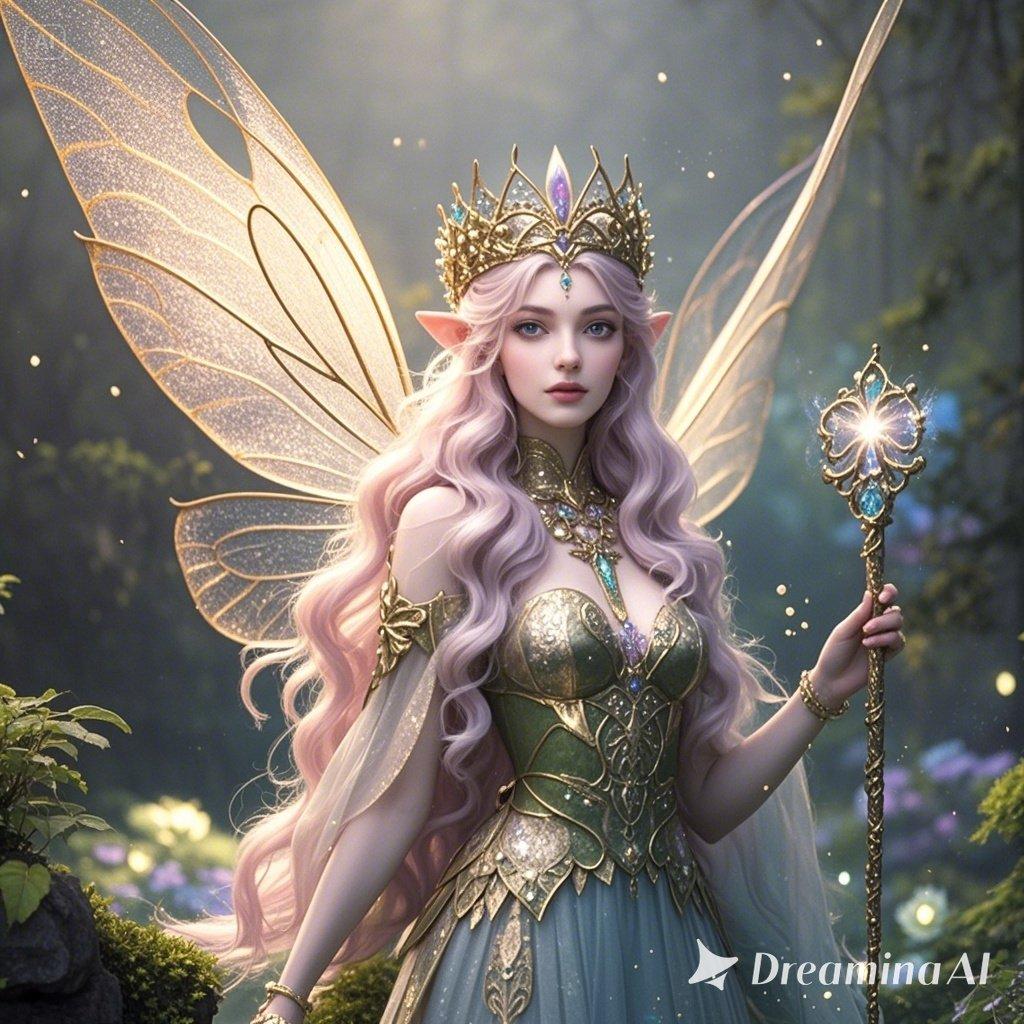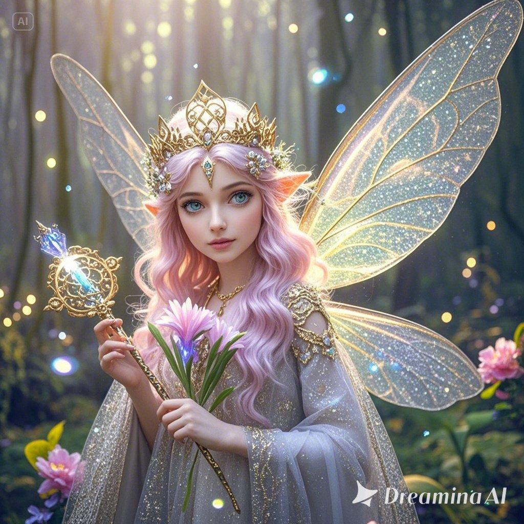 煌めく羽根、王冠に宿る魔力、花を抱くその手に込められた祈り。