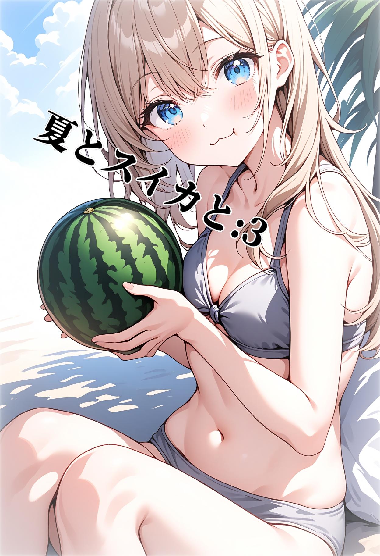 スイカを食べる、Suicaも食べるテンスリーちゃん、テンスリーくんは不安に思う。