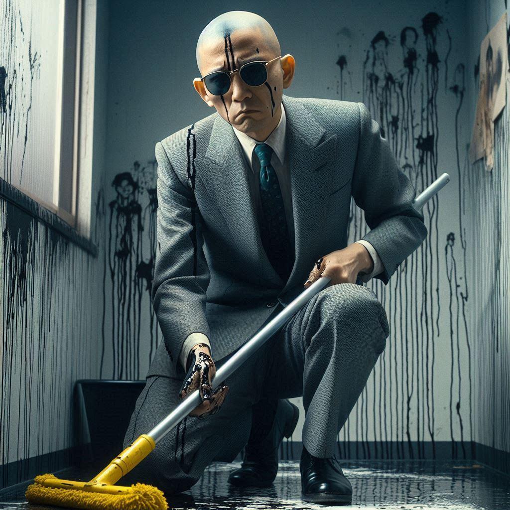 ダイナミックな筆使いなのでそこら中に墨が飛び散る…その後片付けをするおれ