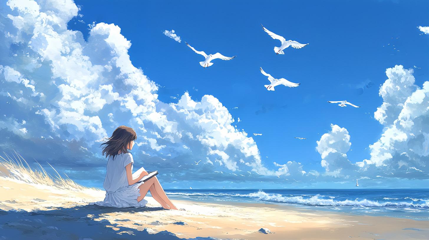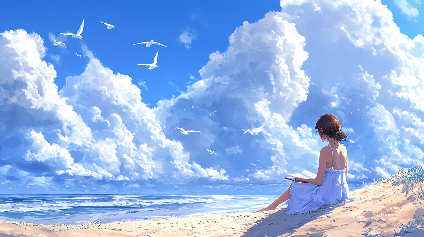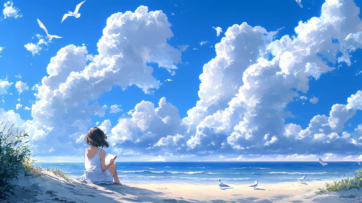 夏休みの宿題 青空の下で