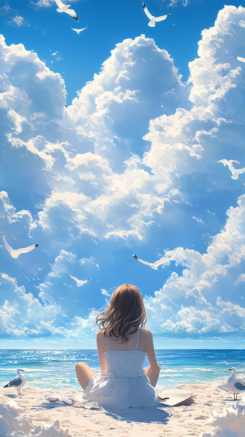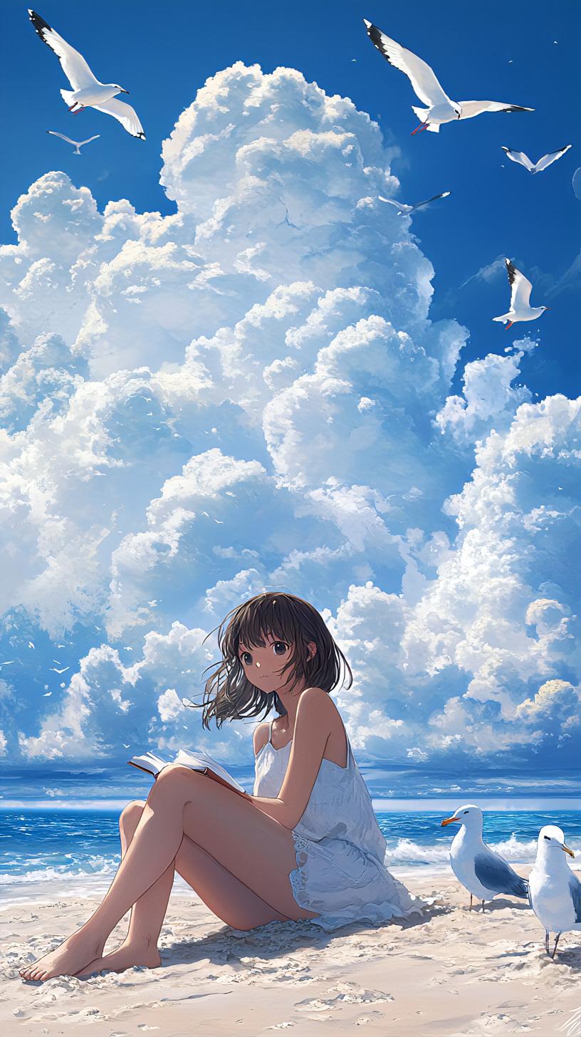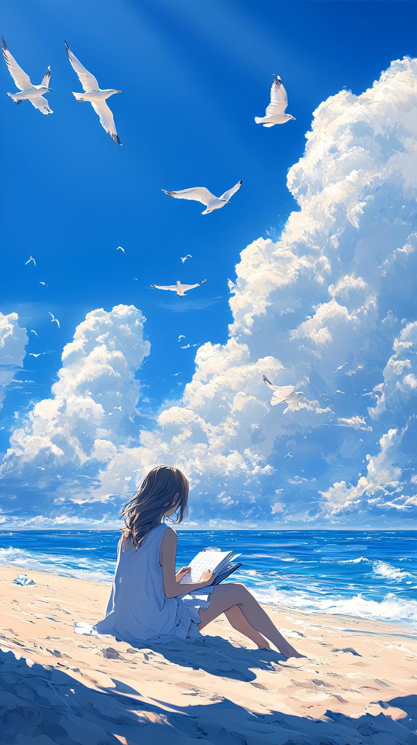 夏休みの宿題 青空の下で