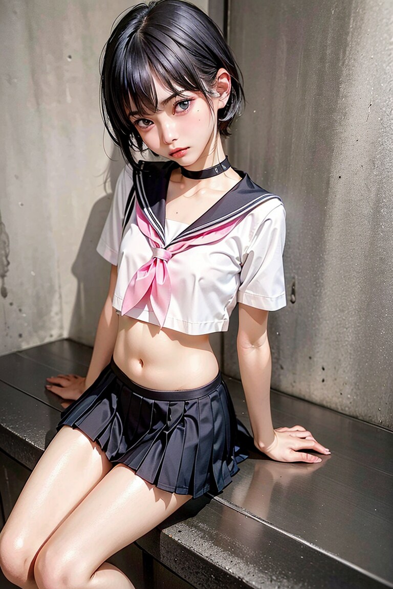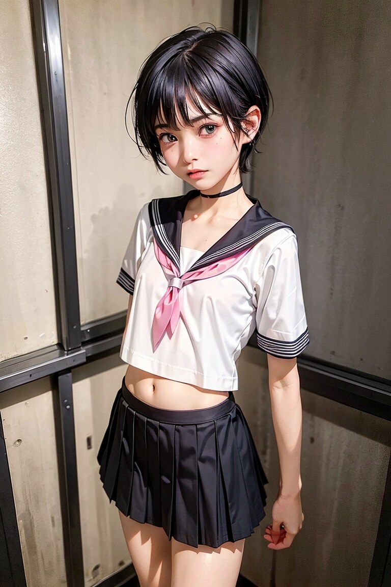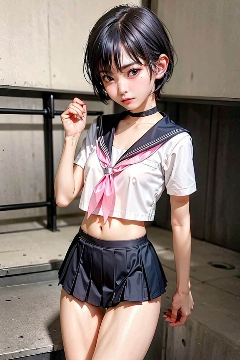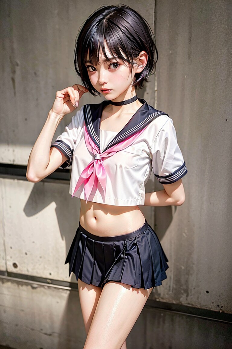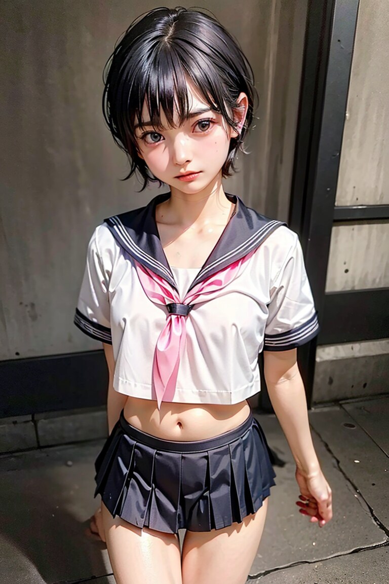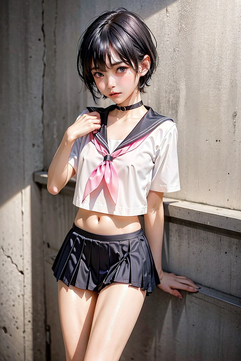 制服女子005_短髪_白セーラー夏服、短髪女子を作成したくなった。そんな季節だよね。