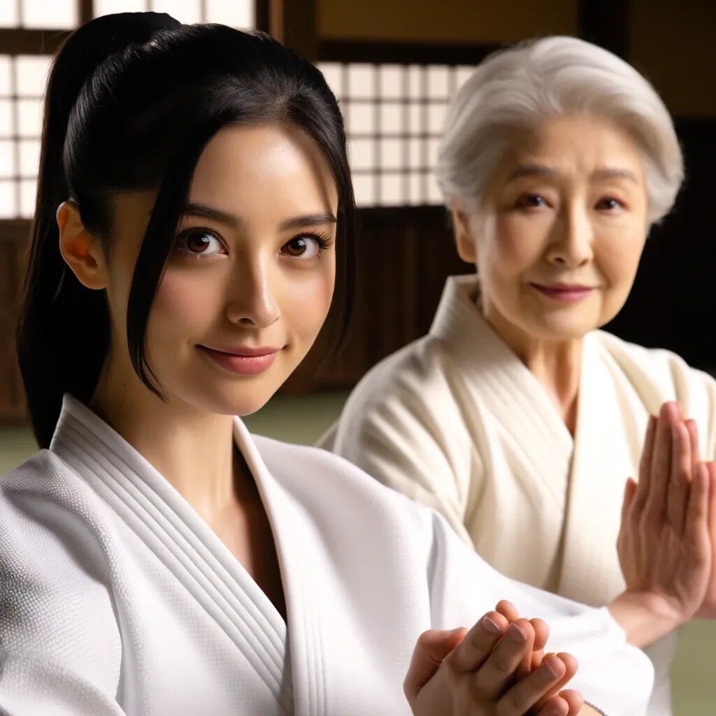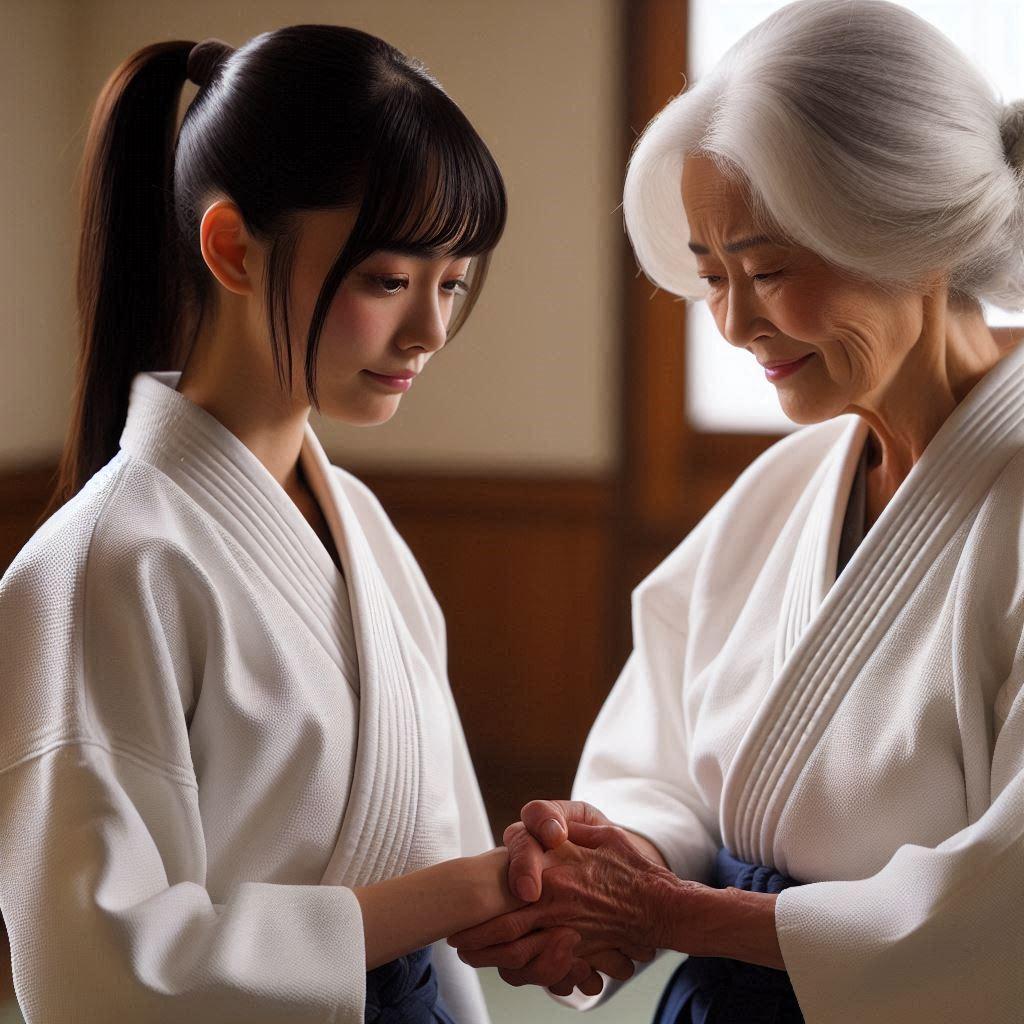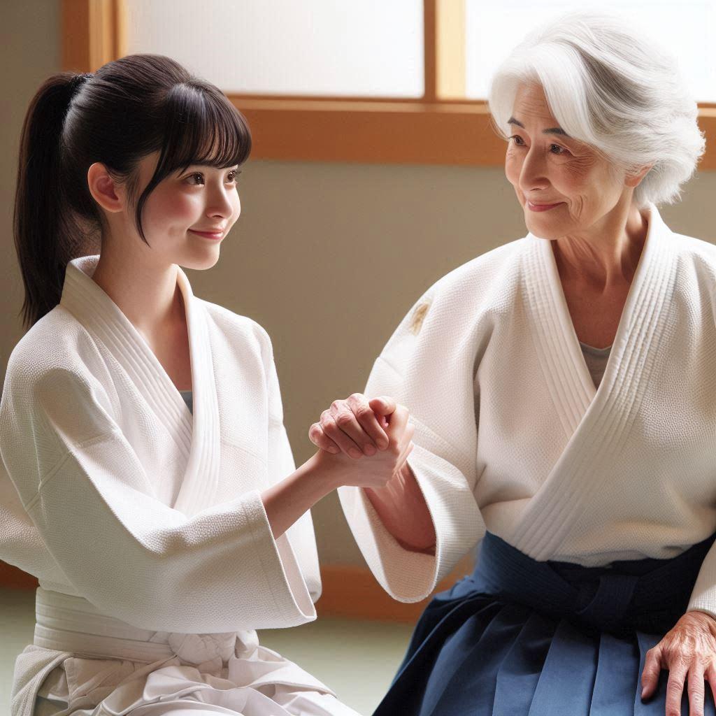 メ「ふふふ、可愛いこと言うわね。久しぶりに来た執事ちゃんの道着姿をおばあちゃんにもよく見せて♡」