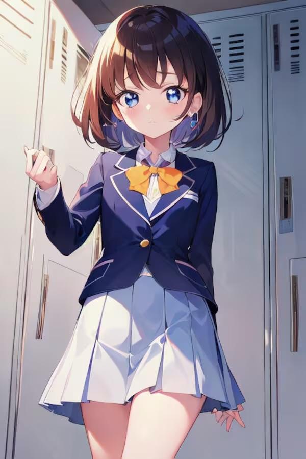 1 girl, slender body, grade school student, (little, ultra cute kawaii), (◯◯ years old child), (small breasts), (in pretty clean style: 1.3), break, (chestnut hair: 1.3), shortcut, bob,