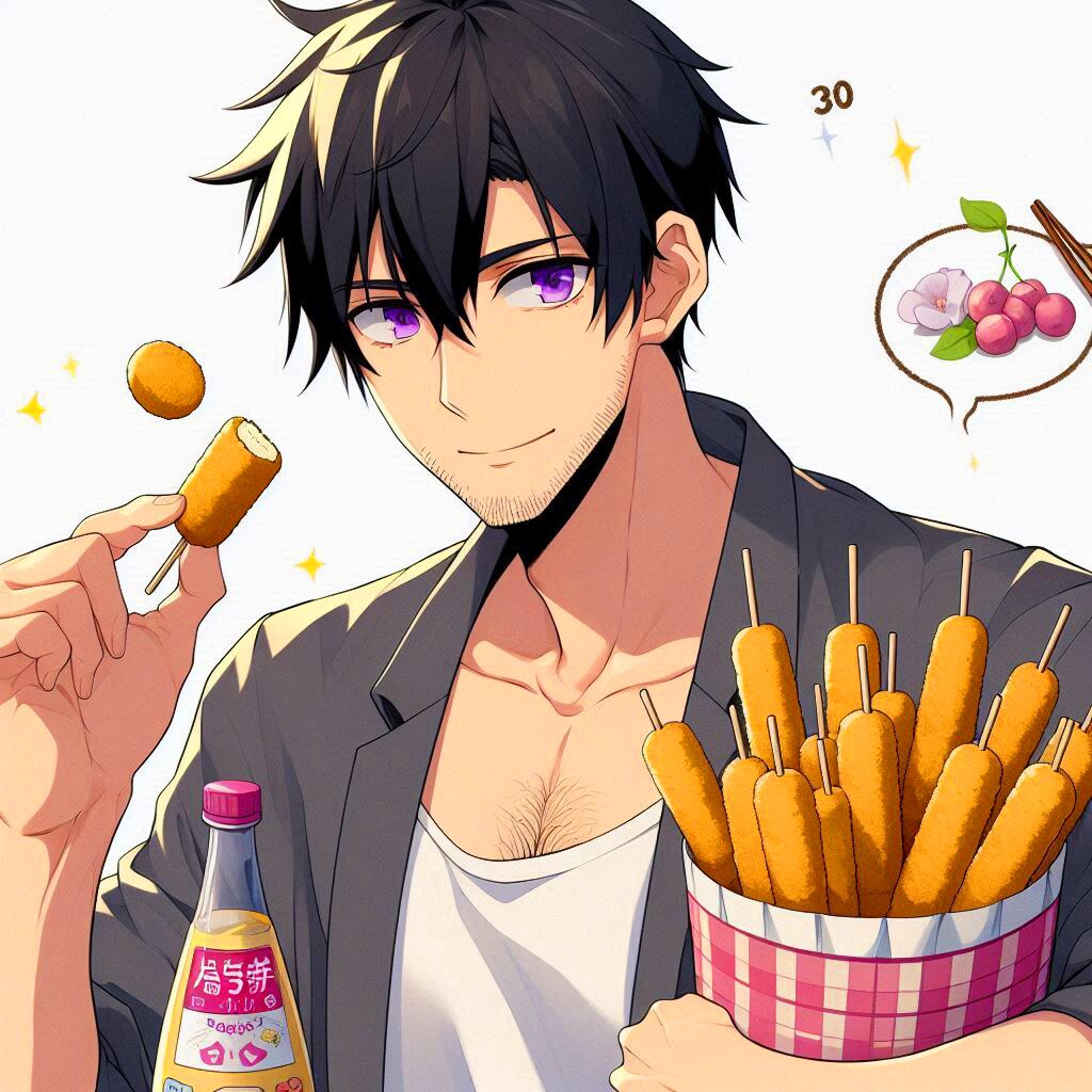 コロッケを食べている、黒髪短髪男性●その1-1(9枚)