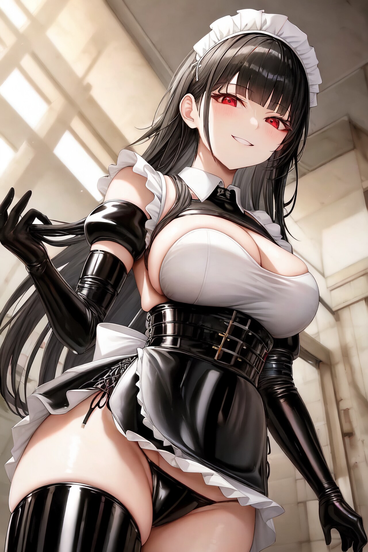 黒髪ぱっつんロングエナメルメイドちゃんローアングル Holara