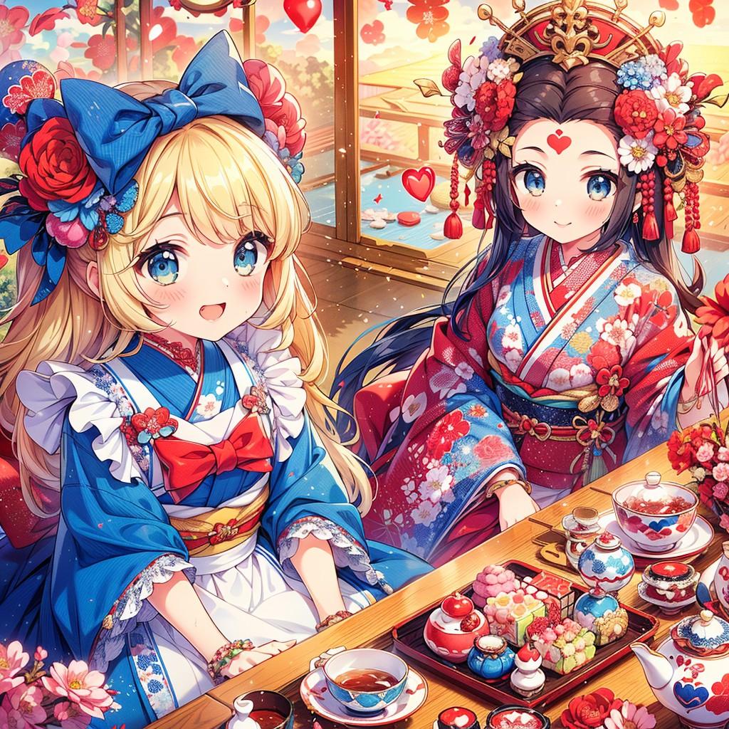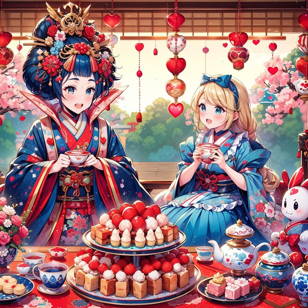 アリスとこころ(ハート)の女王、仲良くお茶会