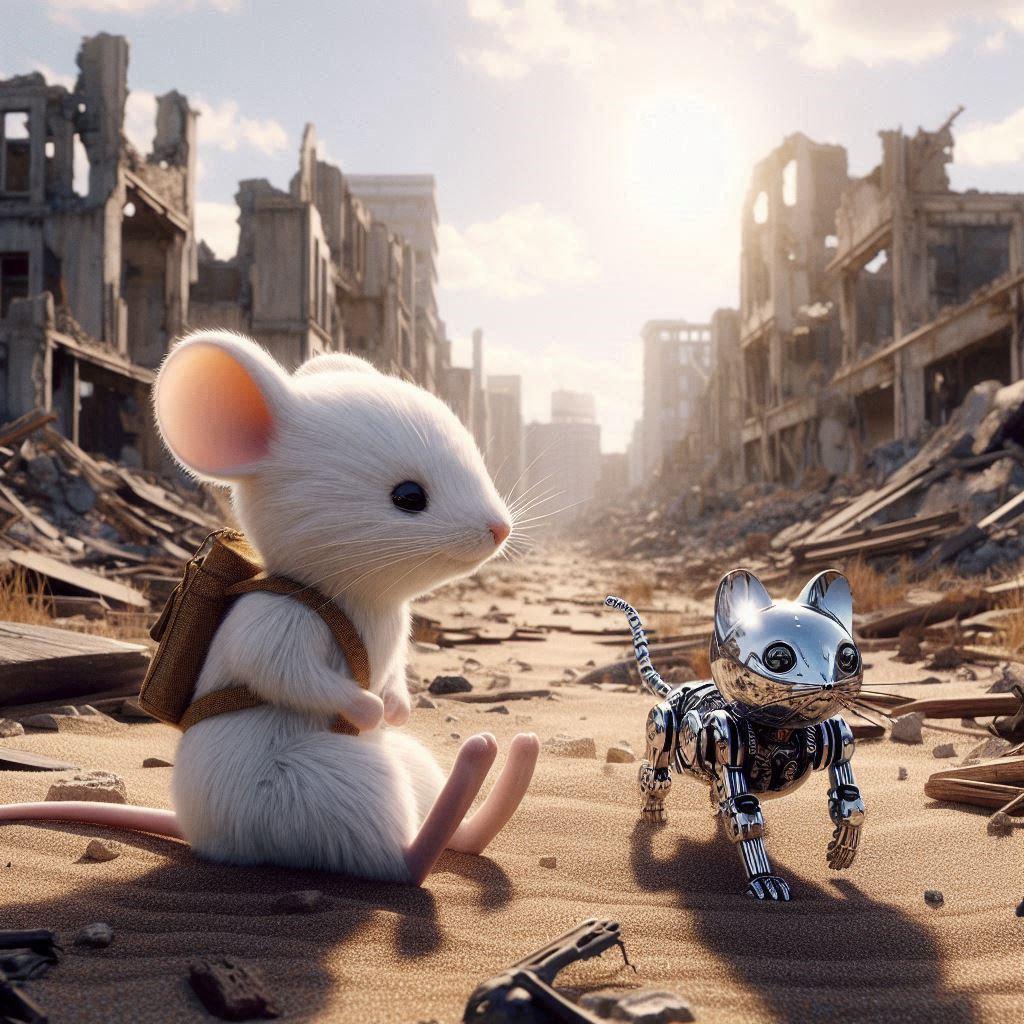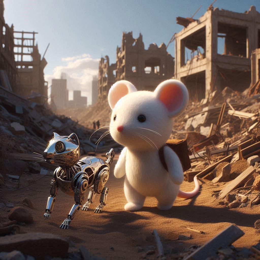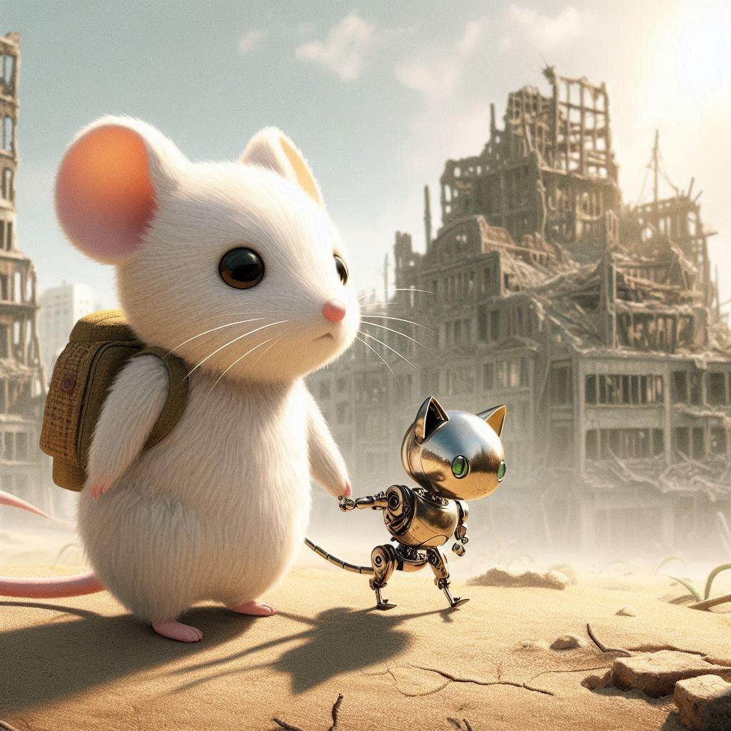 猫くんに手を引かれ、フラットランドへ向かうねずみくん。