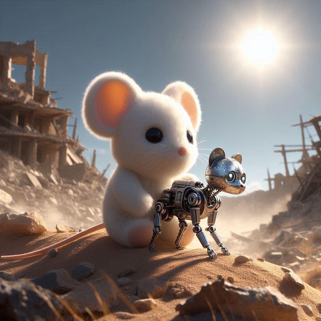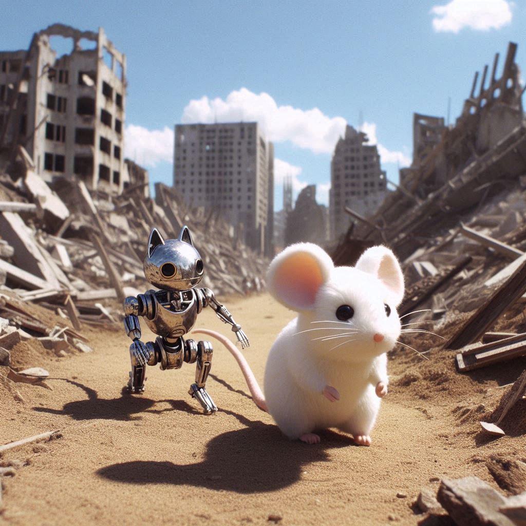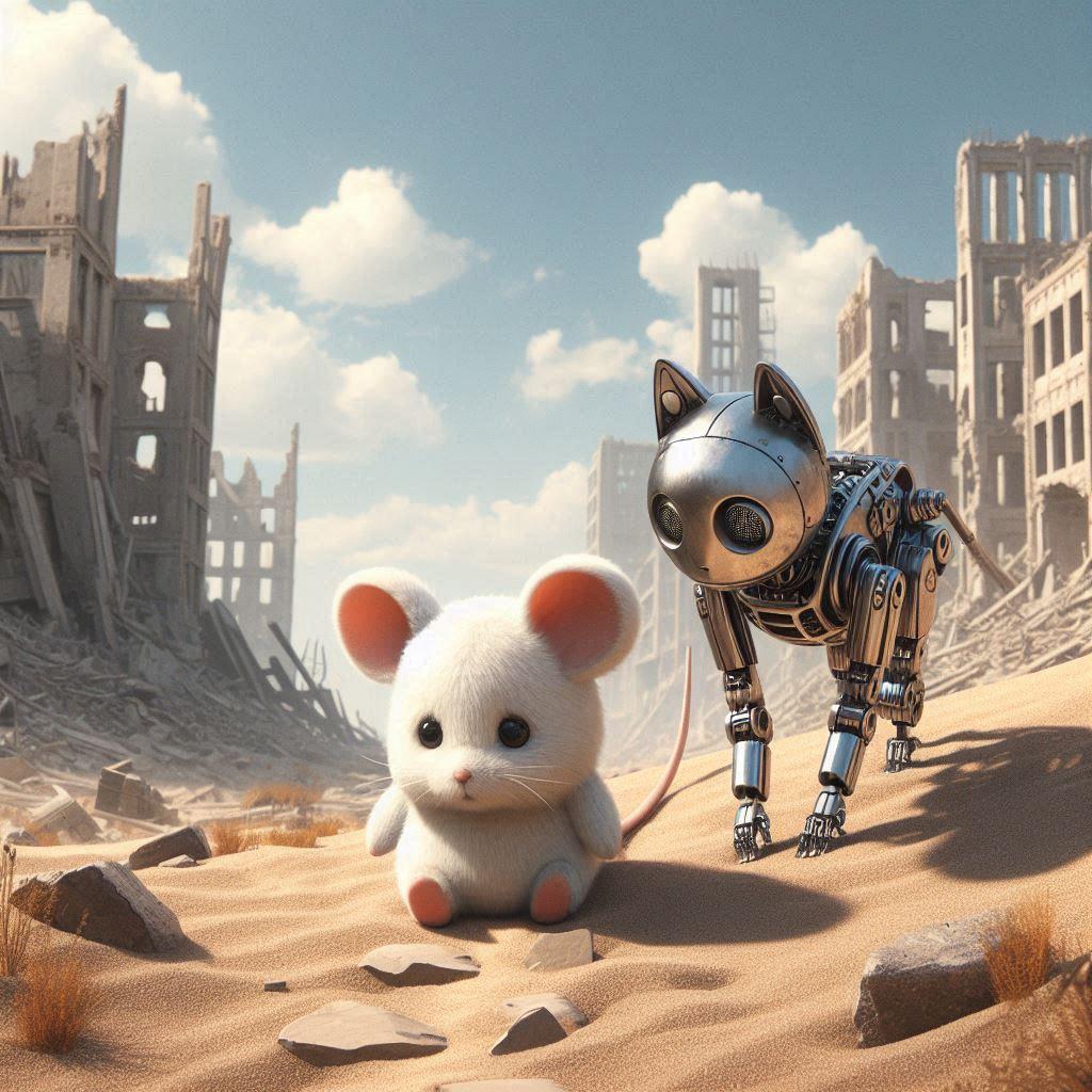 猫くんに手を引かれ、フラットランドへ向かうねずみくん。
