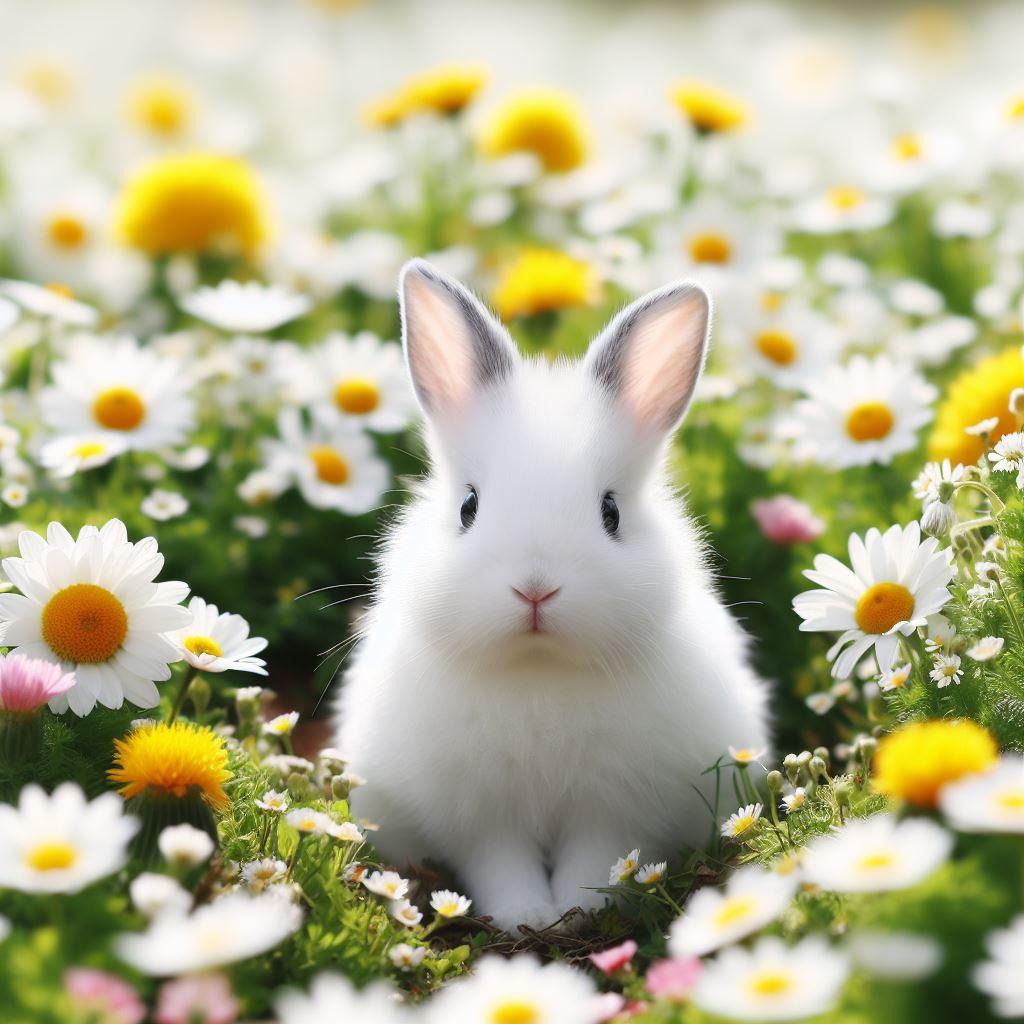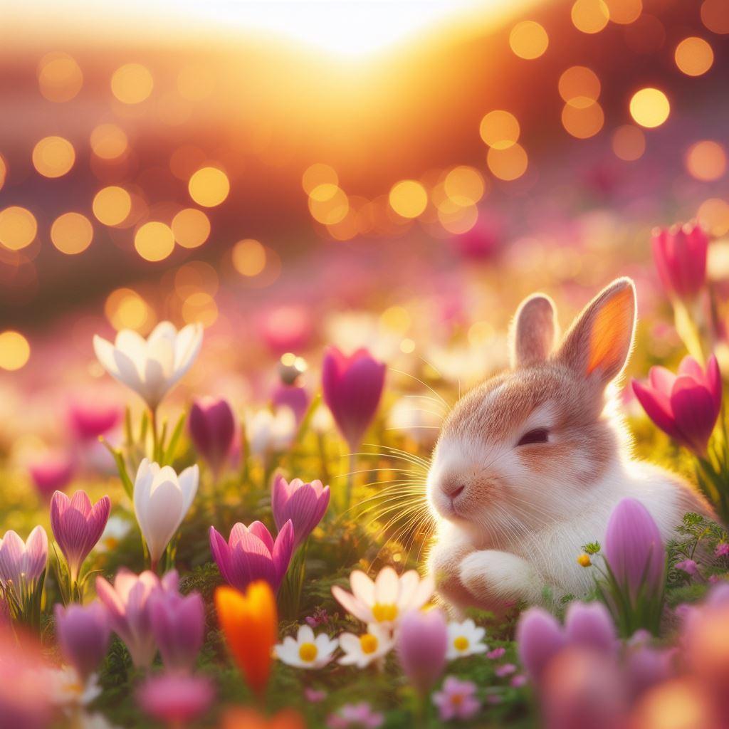 春の草原とウサギ