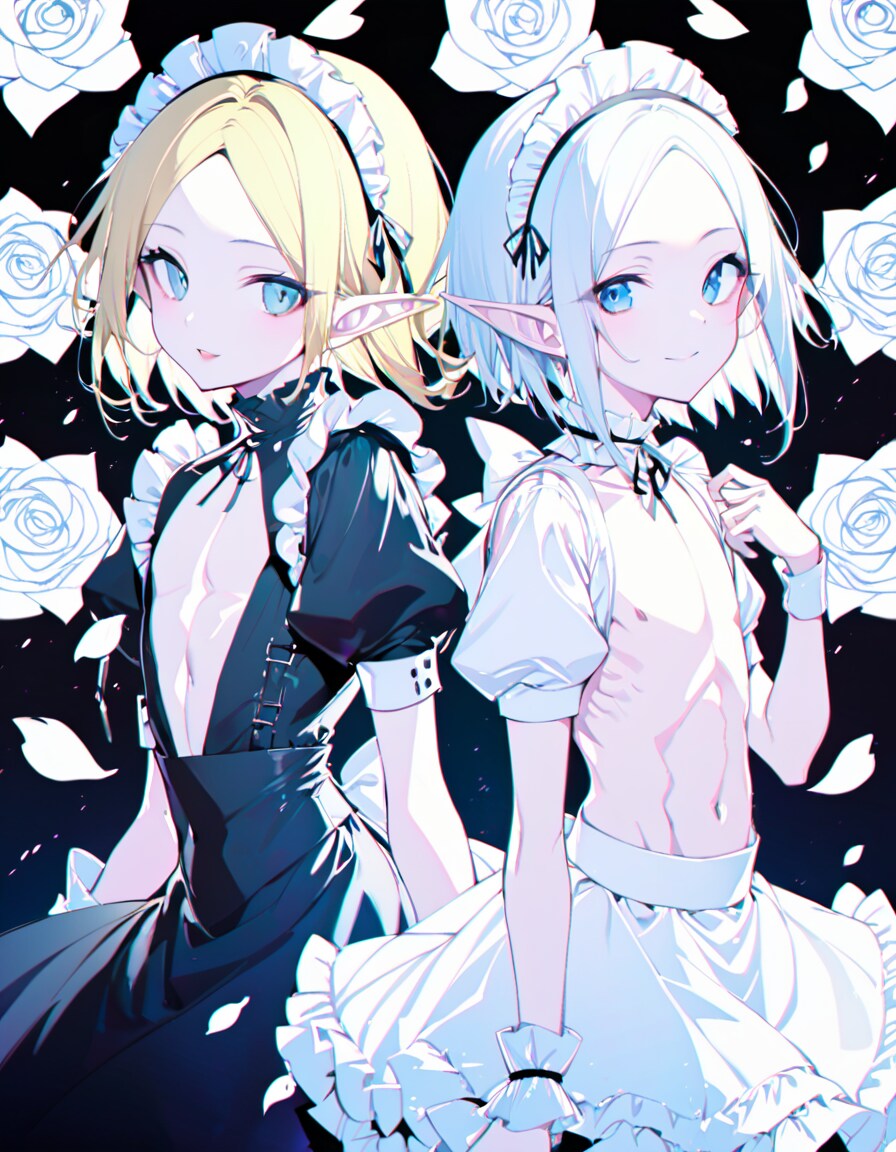 いろいろ出力しましたが、偶然出たこの二人組の男の娘メイドさんを投稿しますね!