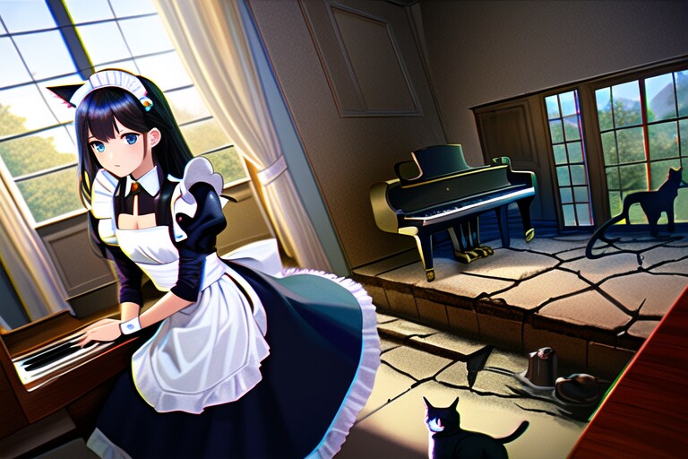 [猫のご主人様とメイドの私]空いた時間はピアノでも(NovelAI)