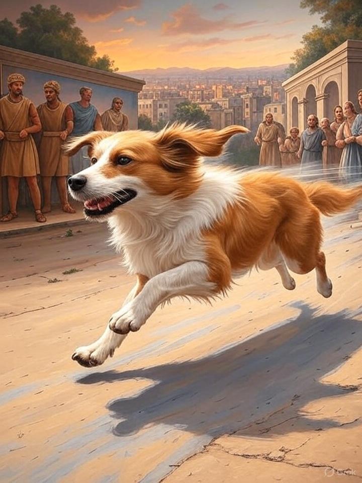 ワンウカランはニャリシャの街を走る。疾走感に穏やかで心地よい風を感じて、彼らも走る。犬は独創的な走りをする。原典すらも越えんと外典は風と成りて、前へ進むのであった。