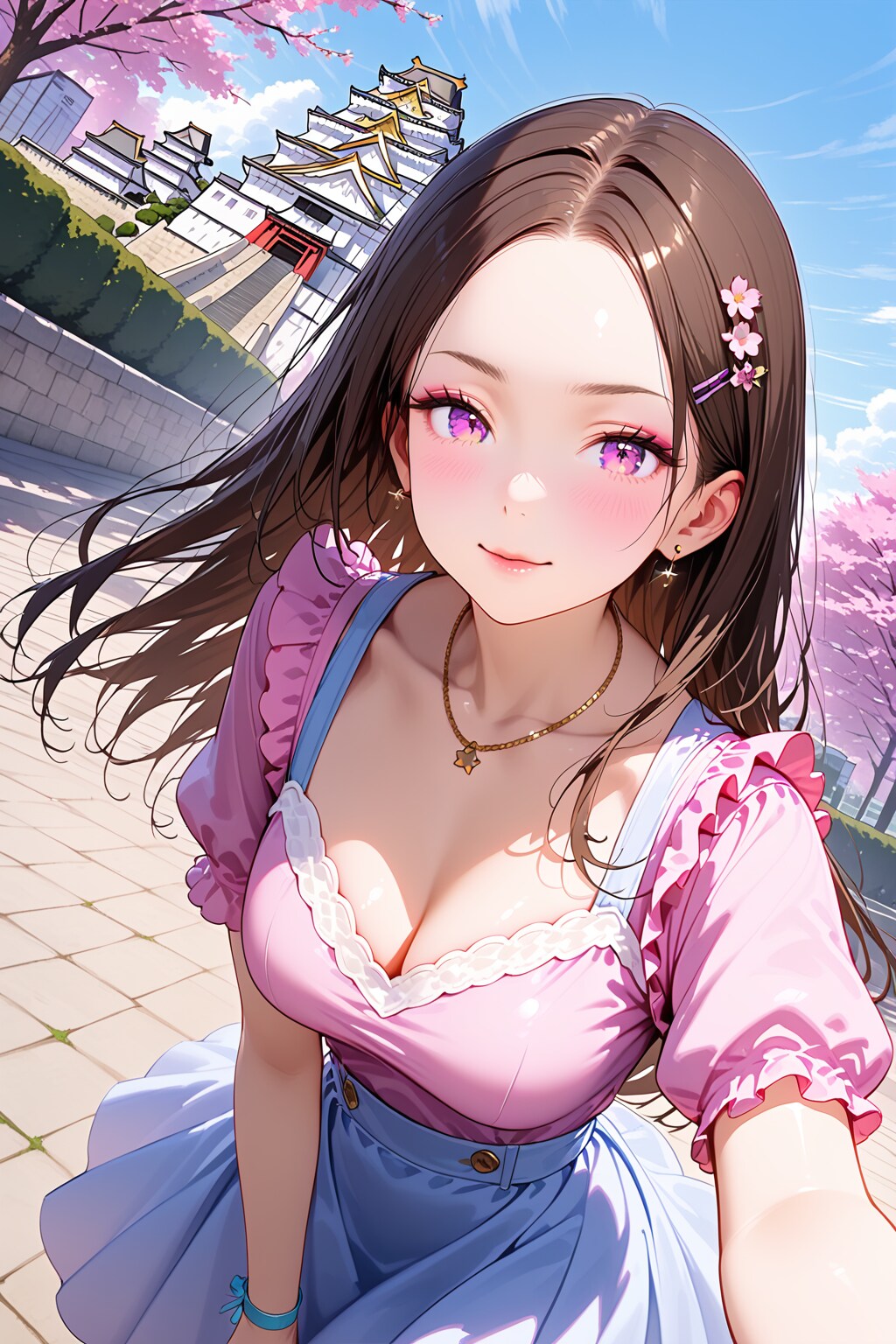 今回は逢瀬愛ちゃんに大阪城に再訪してもらいました!前回は季節感無視の大阪城Tシャツ着てましたが、今回は春らしい衣装とメイクもこだわってみました🌸
