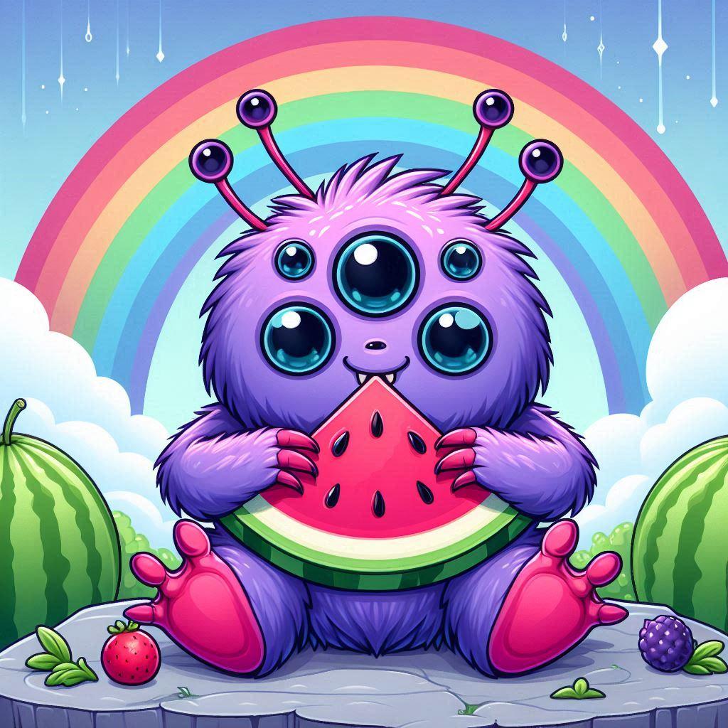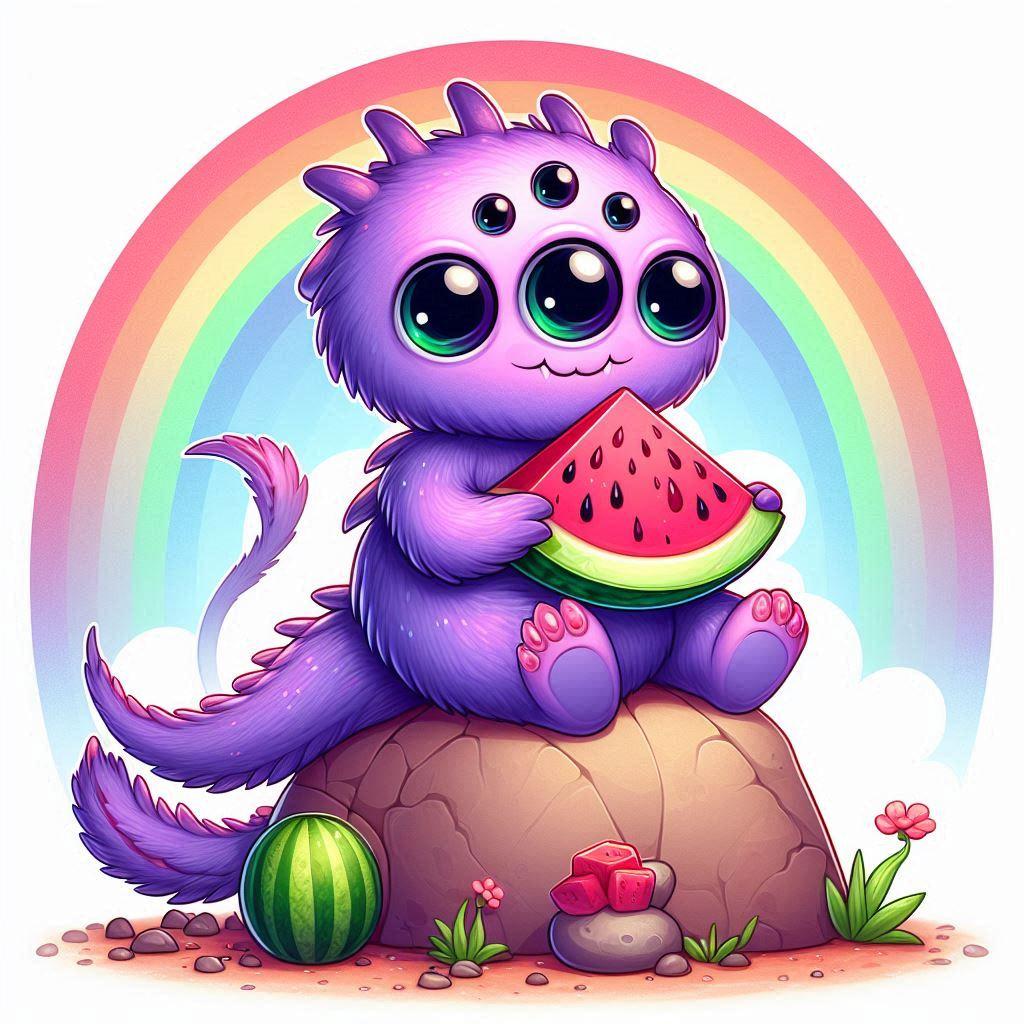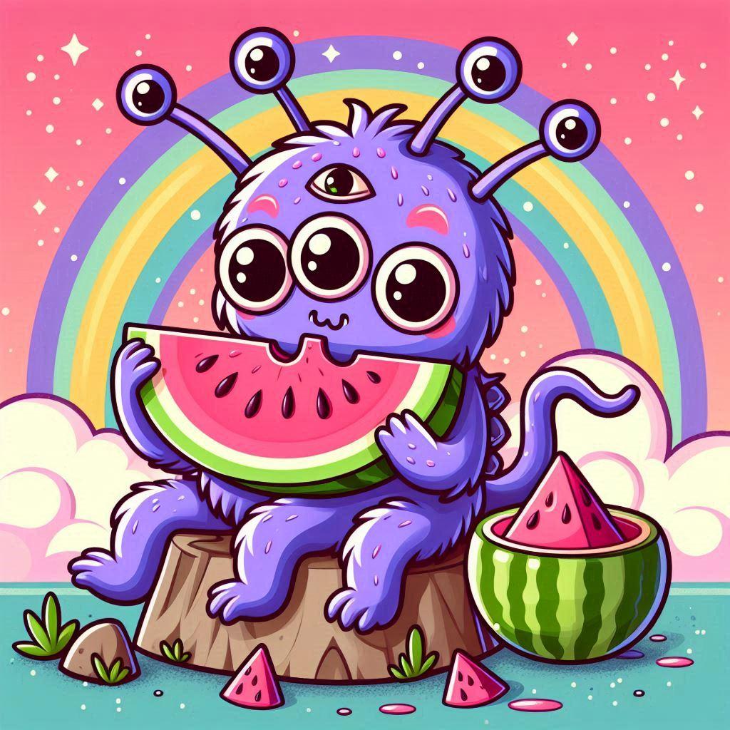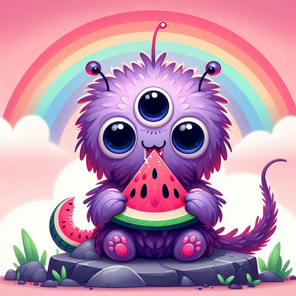 なんでスイカ食べてるんですかね、このモンスター?(別の生成結果はピザ食べてました)
