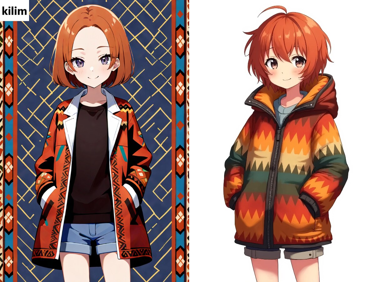 [左]〇〇 pattern wool coat, ←〇〇=柄名