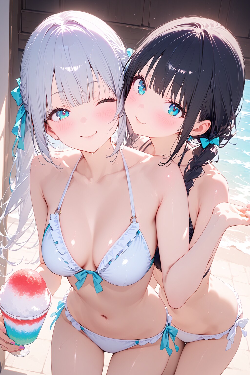 1枚目のBEHIMOTHでの生成は絵梨奈ちゃんの髪色❗️瑠奈さんと絵梨奈ちゃんの仲良し水着はバッチリです👍