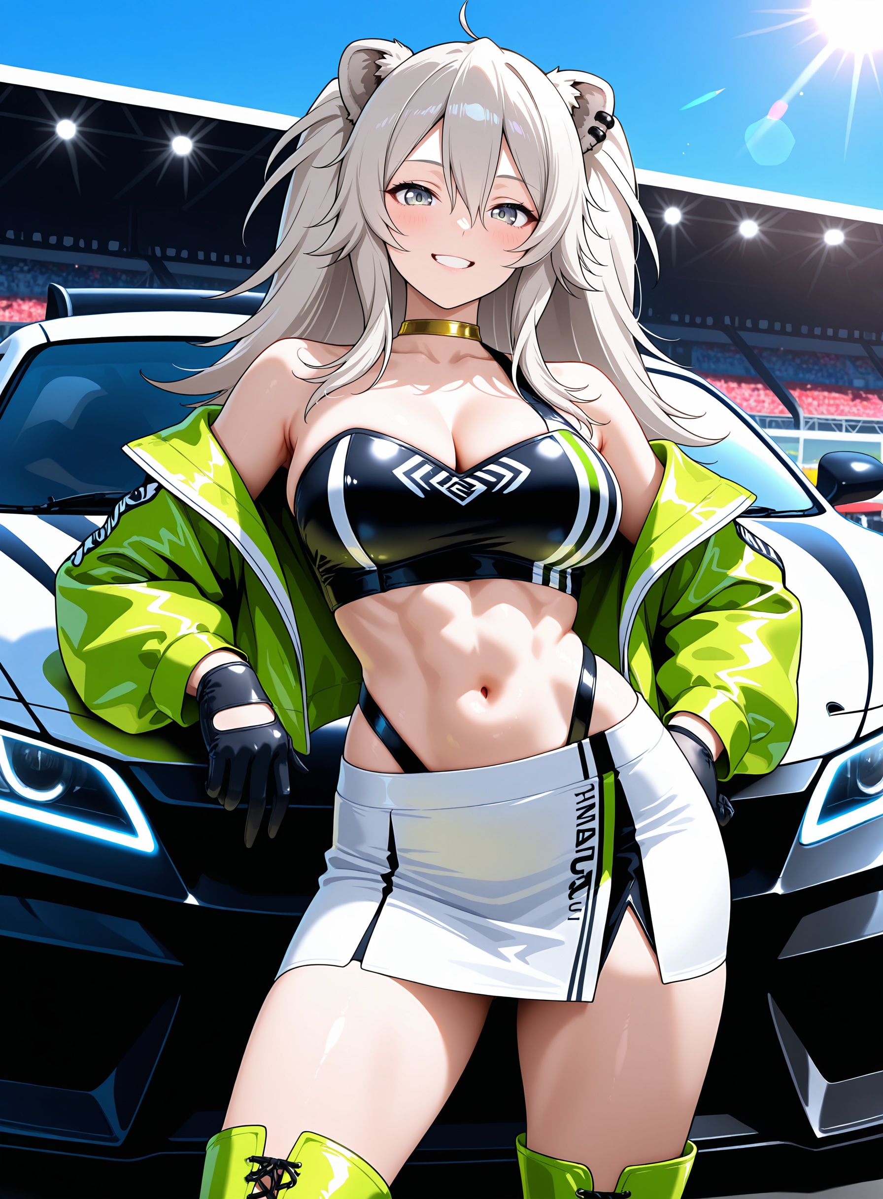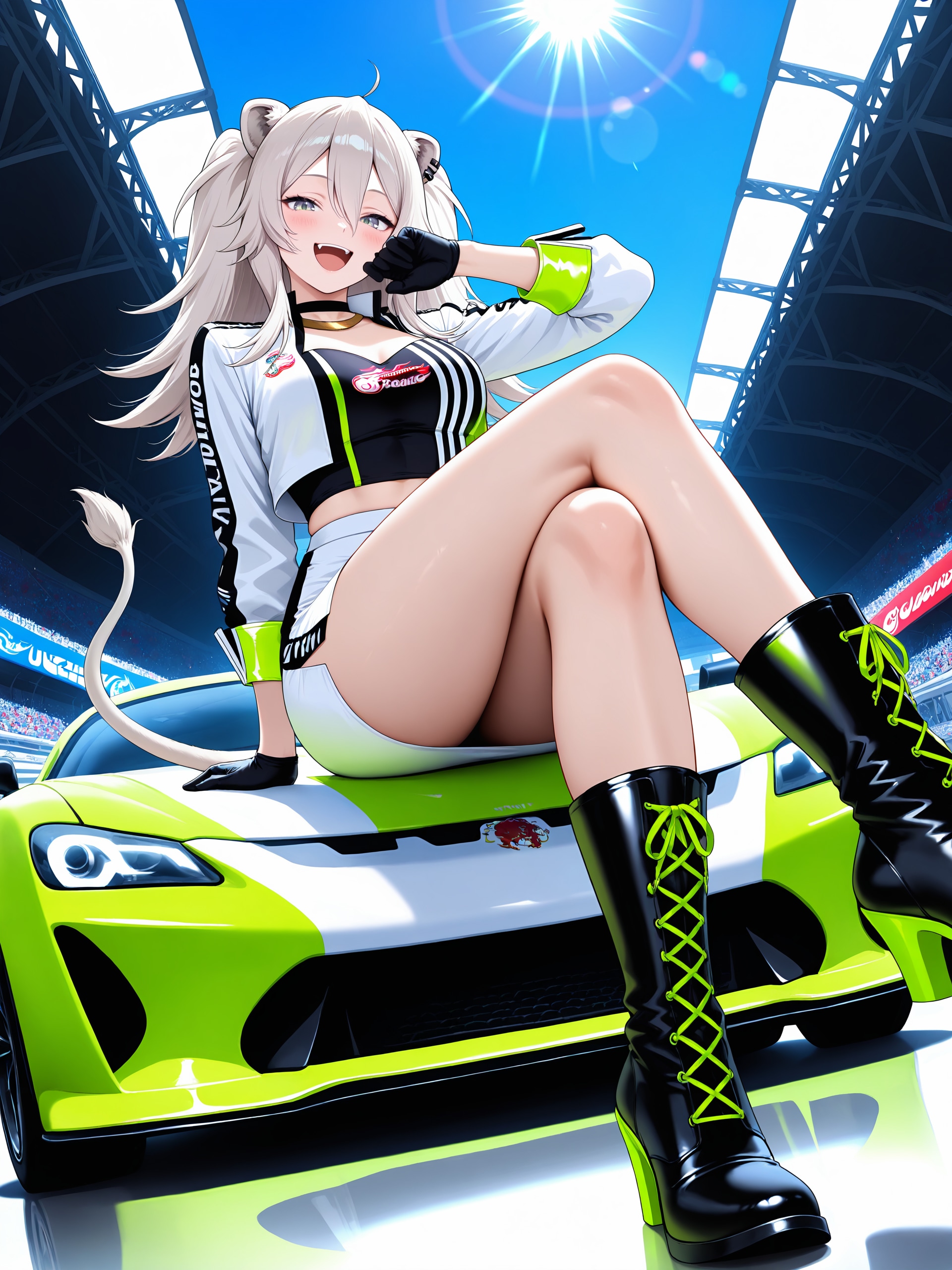 RQとあらばいつもはパンストも指定する所ですが、今回はあえての生足。ジャングルブーツとか似合いそうだったので指定してみたのですが、時々サイハイブーツが生成されるという……まあ似合ってるからヨシ!