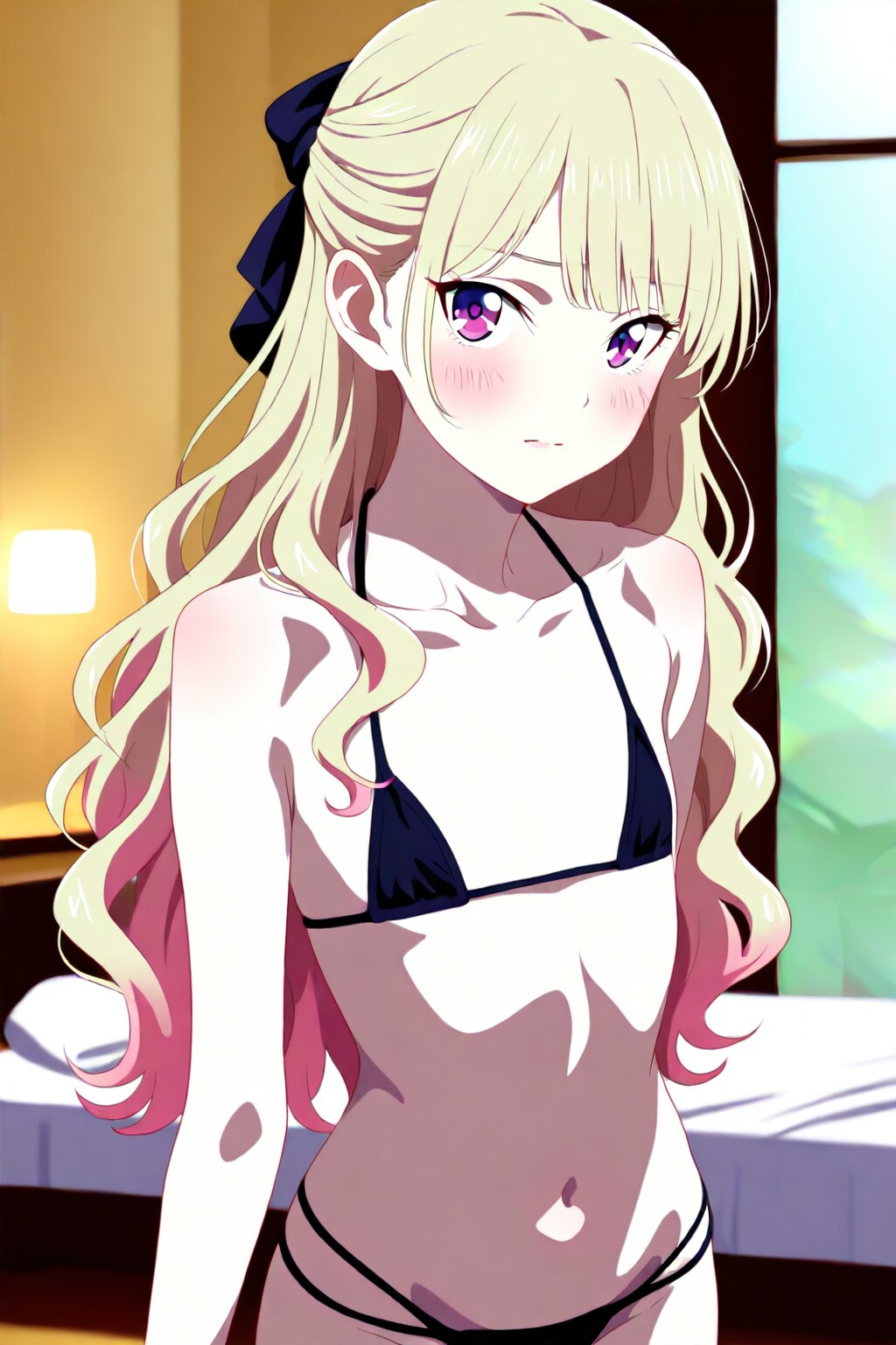 金髪貧乳マイクロ黒ビキニ