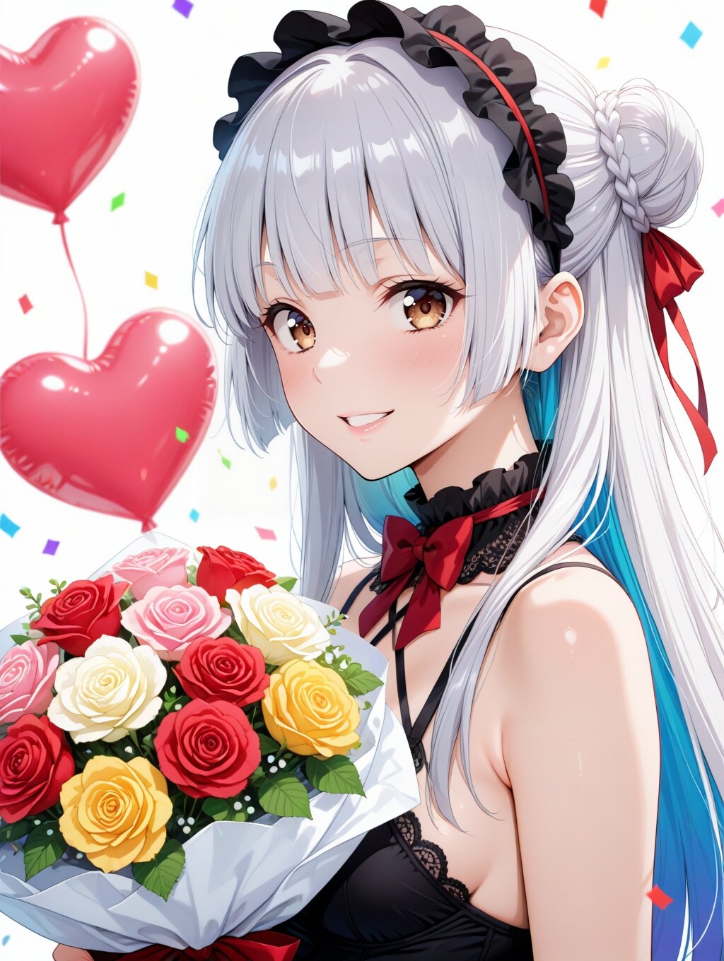 1girl,bishoujo,teen,(brown eyes:1.2),silver hair,bangs,gradient,medium breasts,