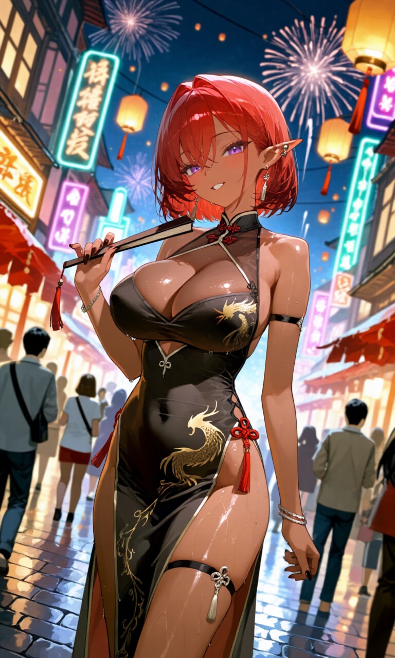 夜のデートでやって来た彼女。大胆でセクシーなチャイナドレスでこっちもドキドキしてしまう。