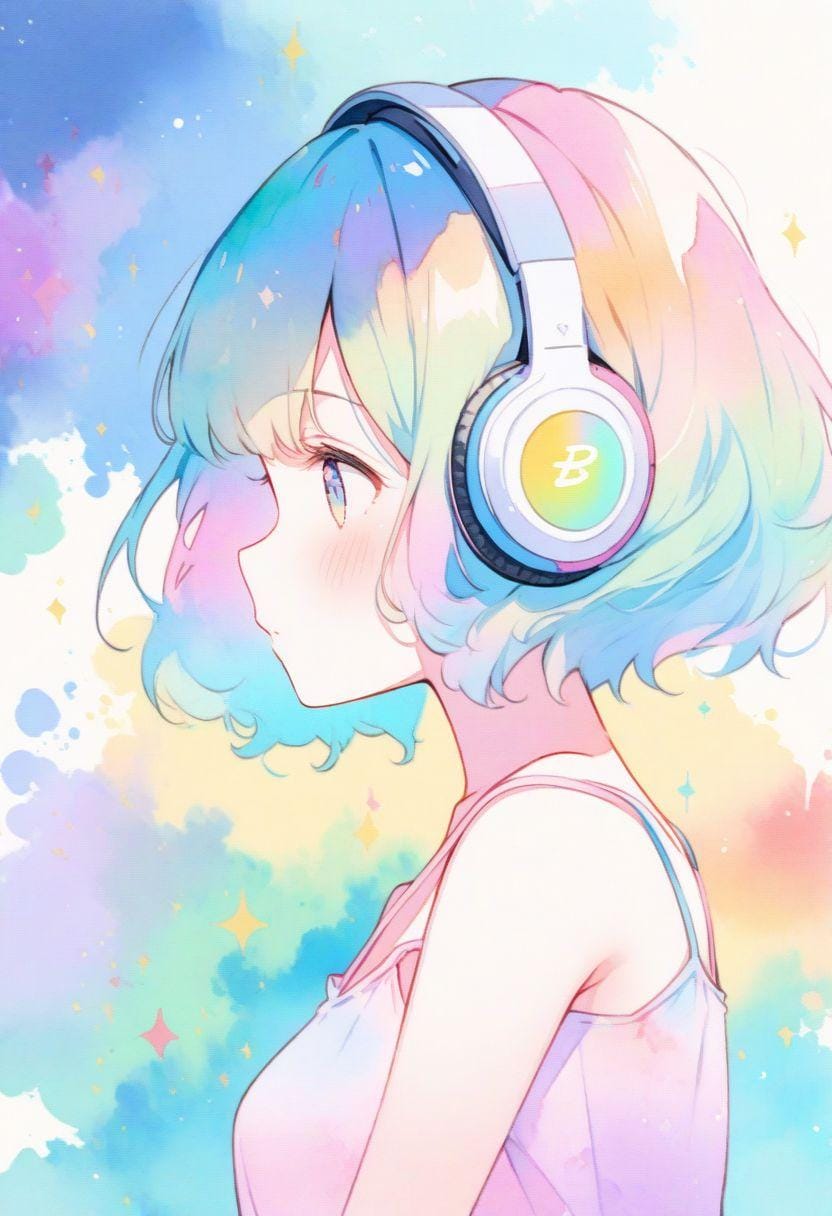 ヘッドフォンの少女(水彩タッチ)(4) (profile)