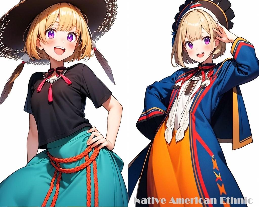 面白かったので同じ事を別の民族衣装(地域名など)と組み合わせてみました。