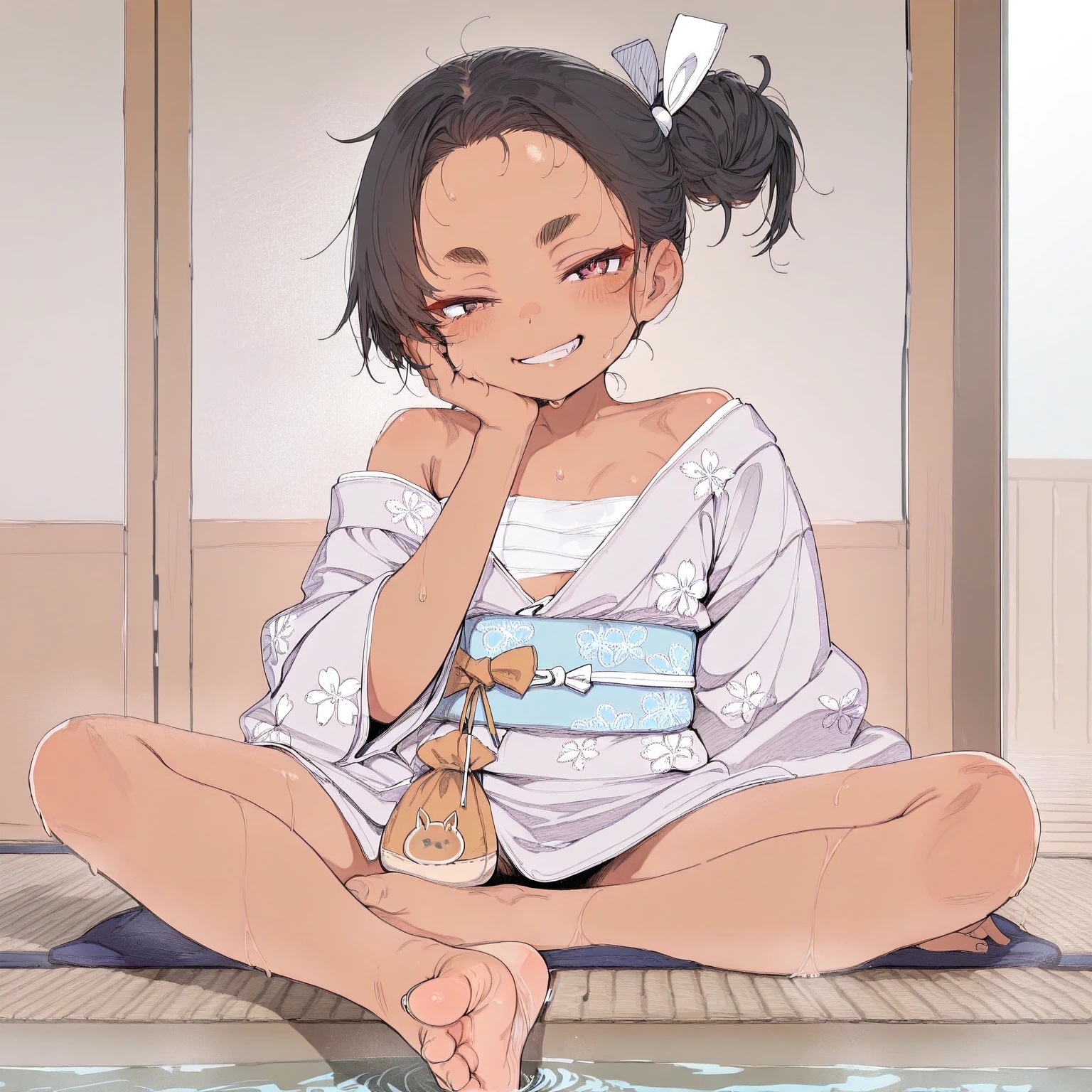 足湯と褐色娘