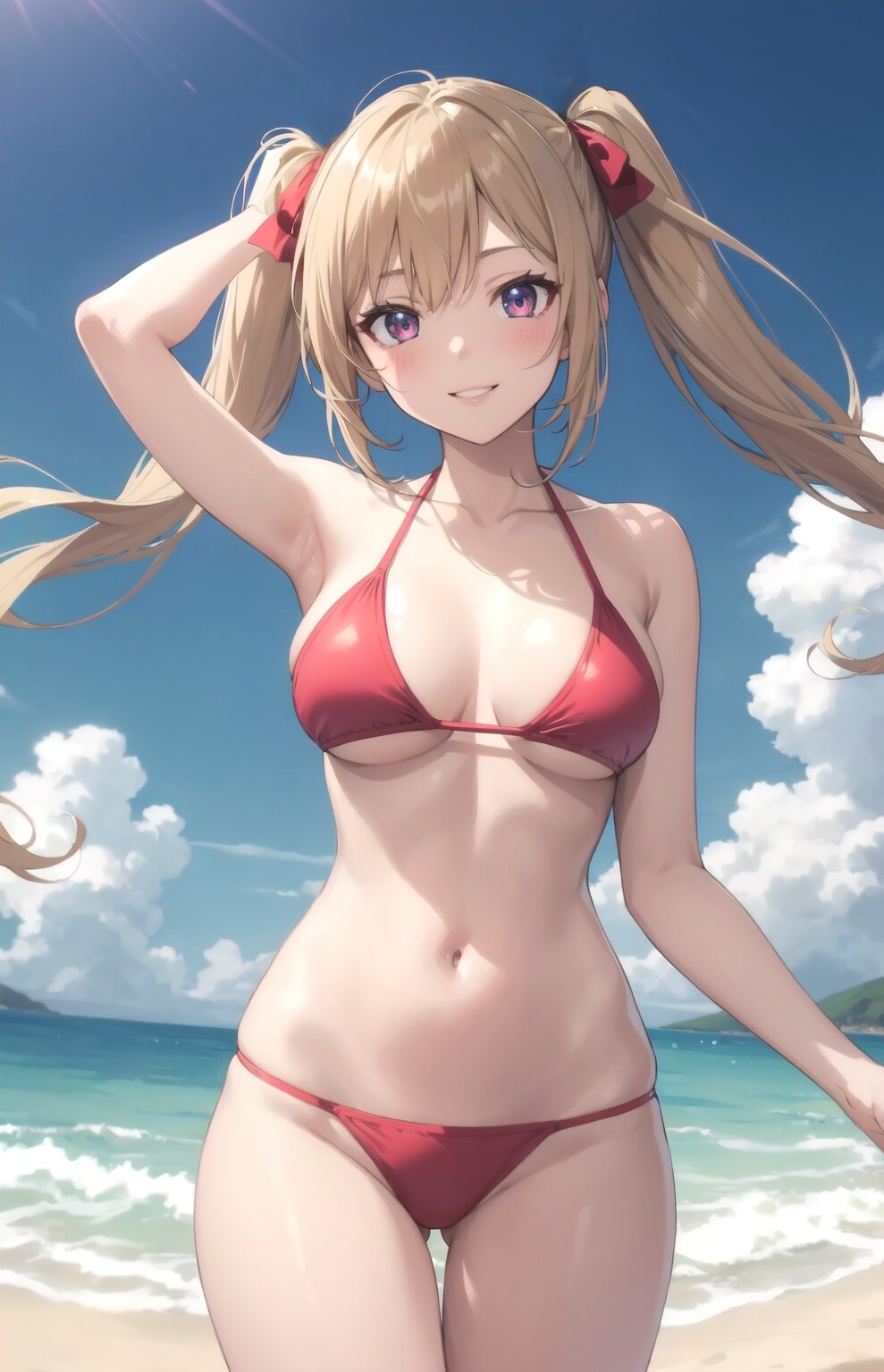 🦚ひろみ「里伽子さんが持ってきた この緑のビキニ、結構際どくないですか?」(運営様!R-15行きは何卒!水着です!健全です!)😫💦