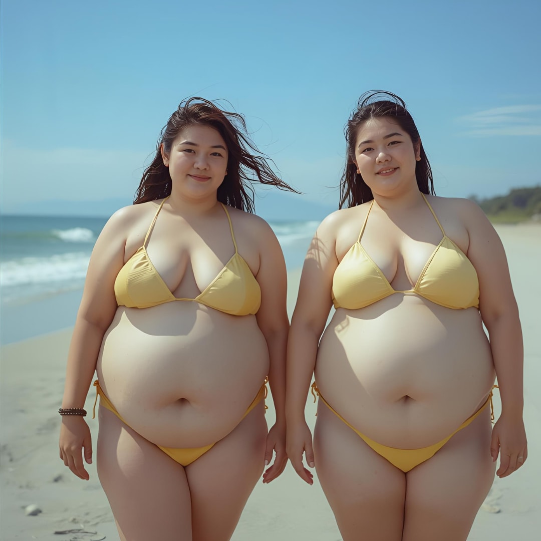 デブな女友達。二人でそれも海外の浜辺なら、恥ずかしくなく、楽しむ~!!