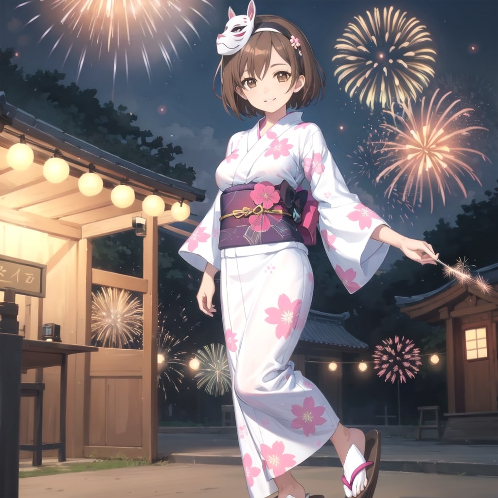 花火大会を楽しむ浴衣の女の子