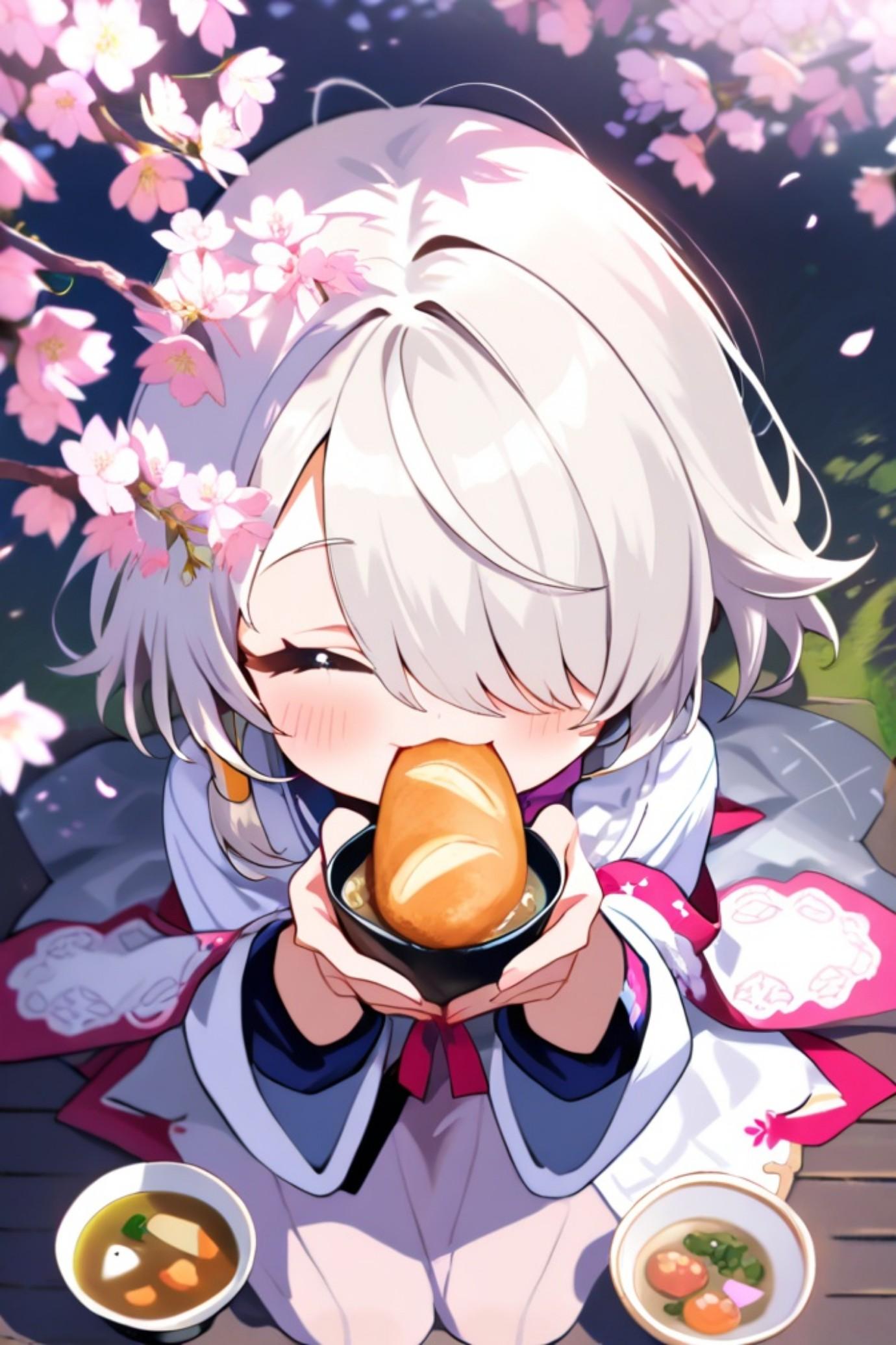 お花見の白髪ちゃん