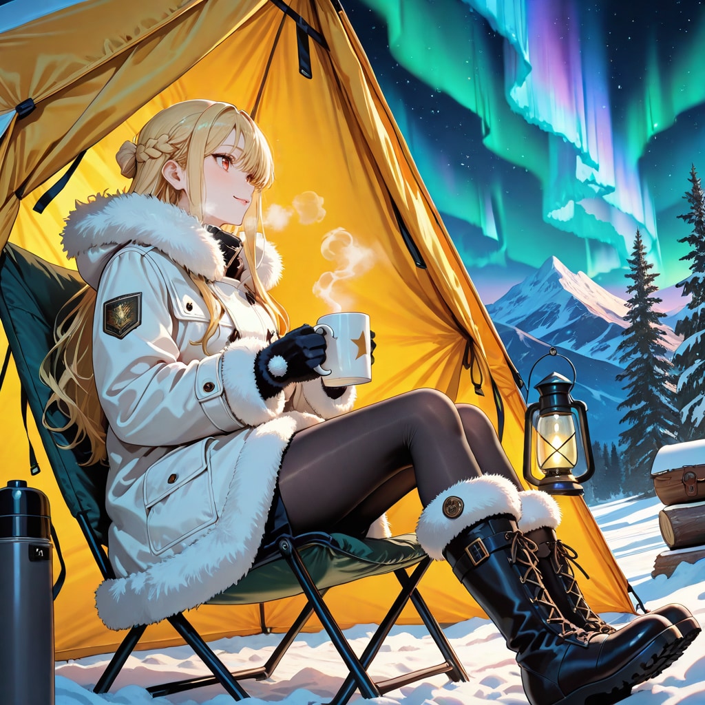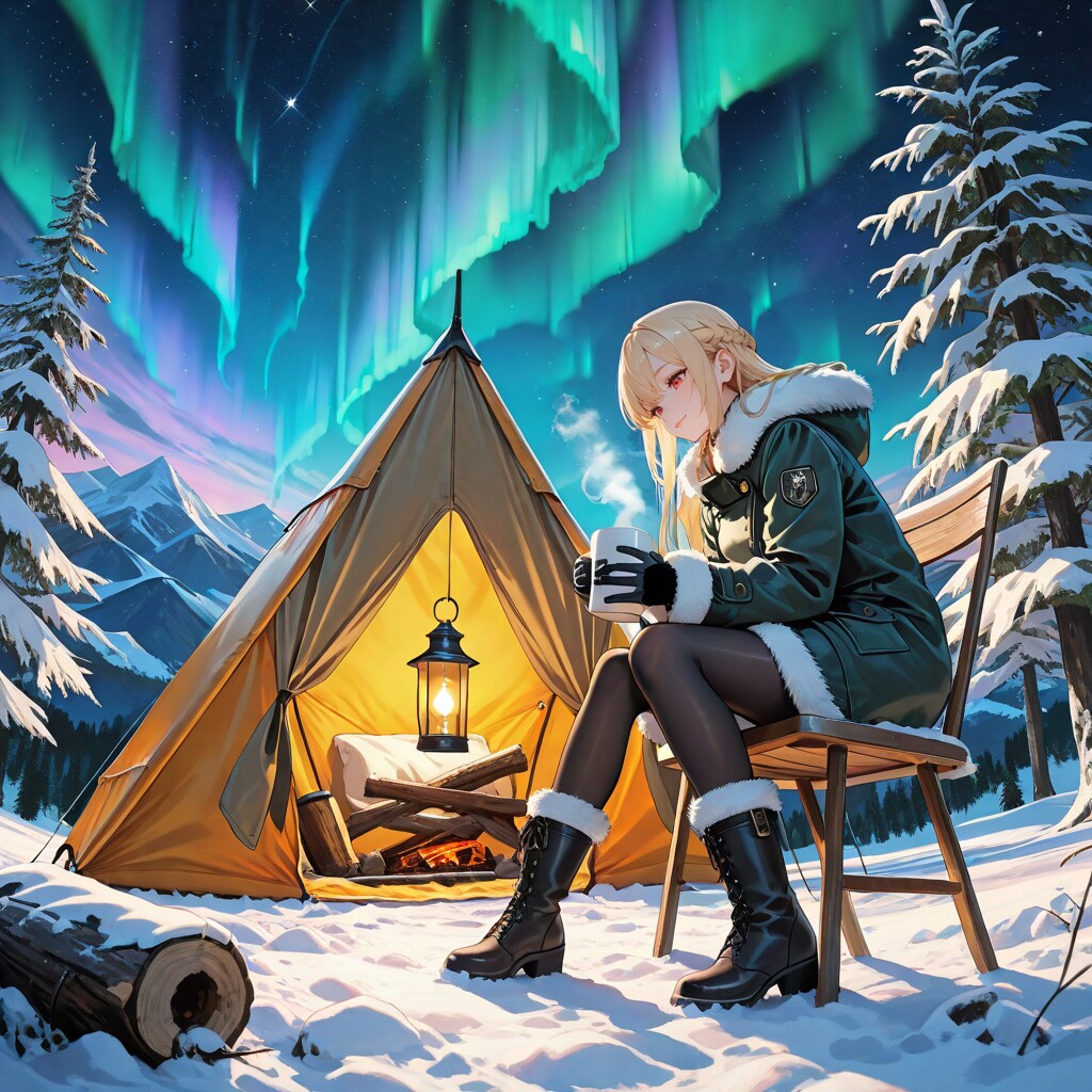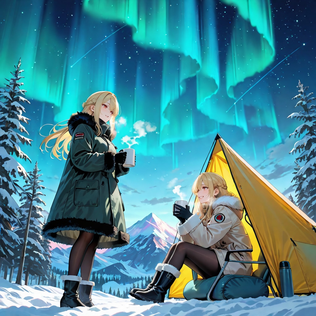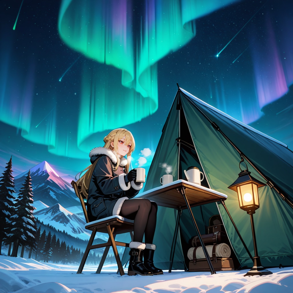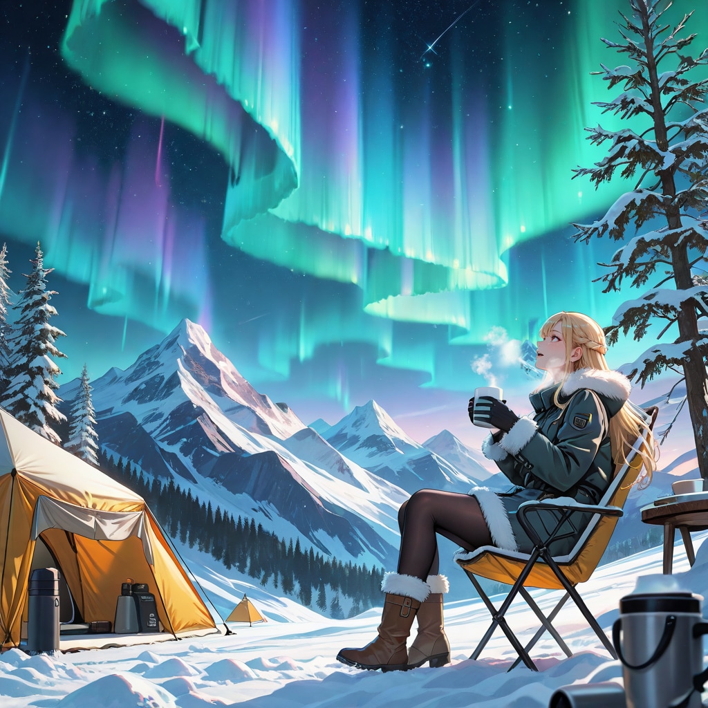 オーロラの下でキャンプ