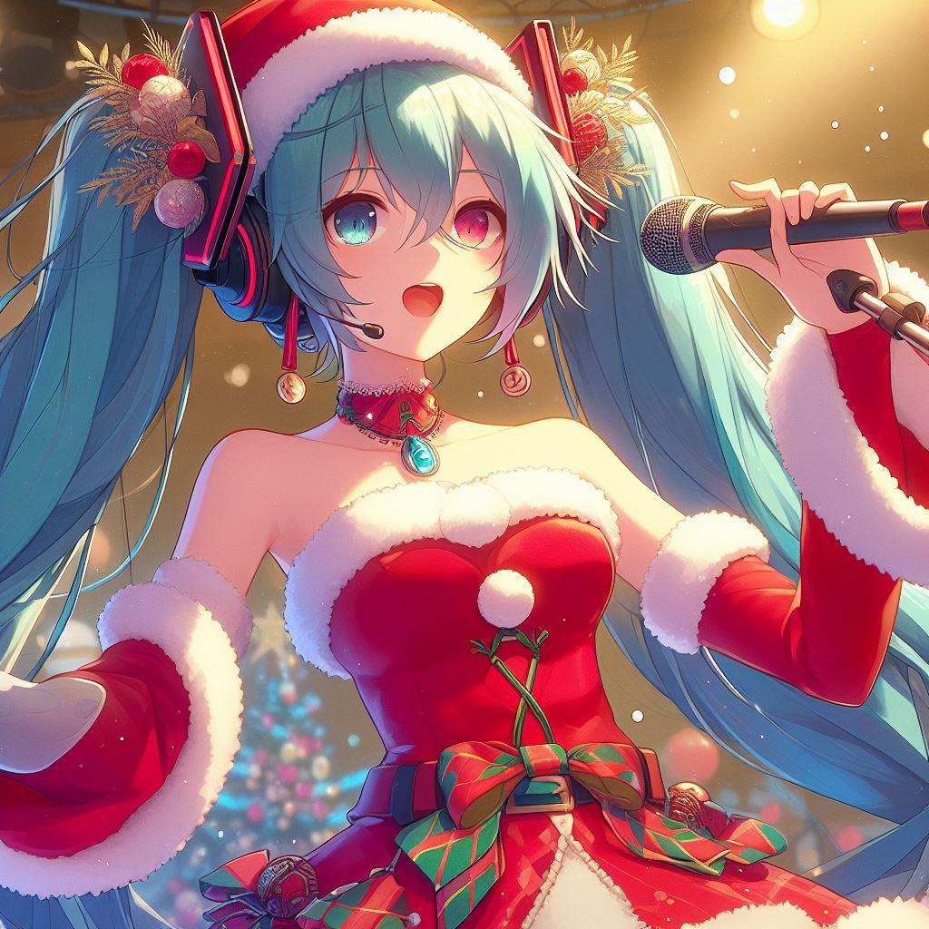 昨年、色々とプロンプトを試行錯誤して生成してみた「初音ミク」のサンタコスプレです。