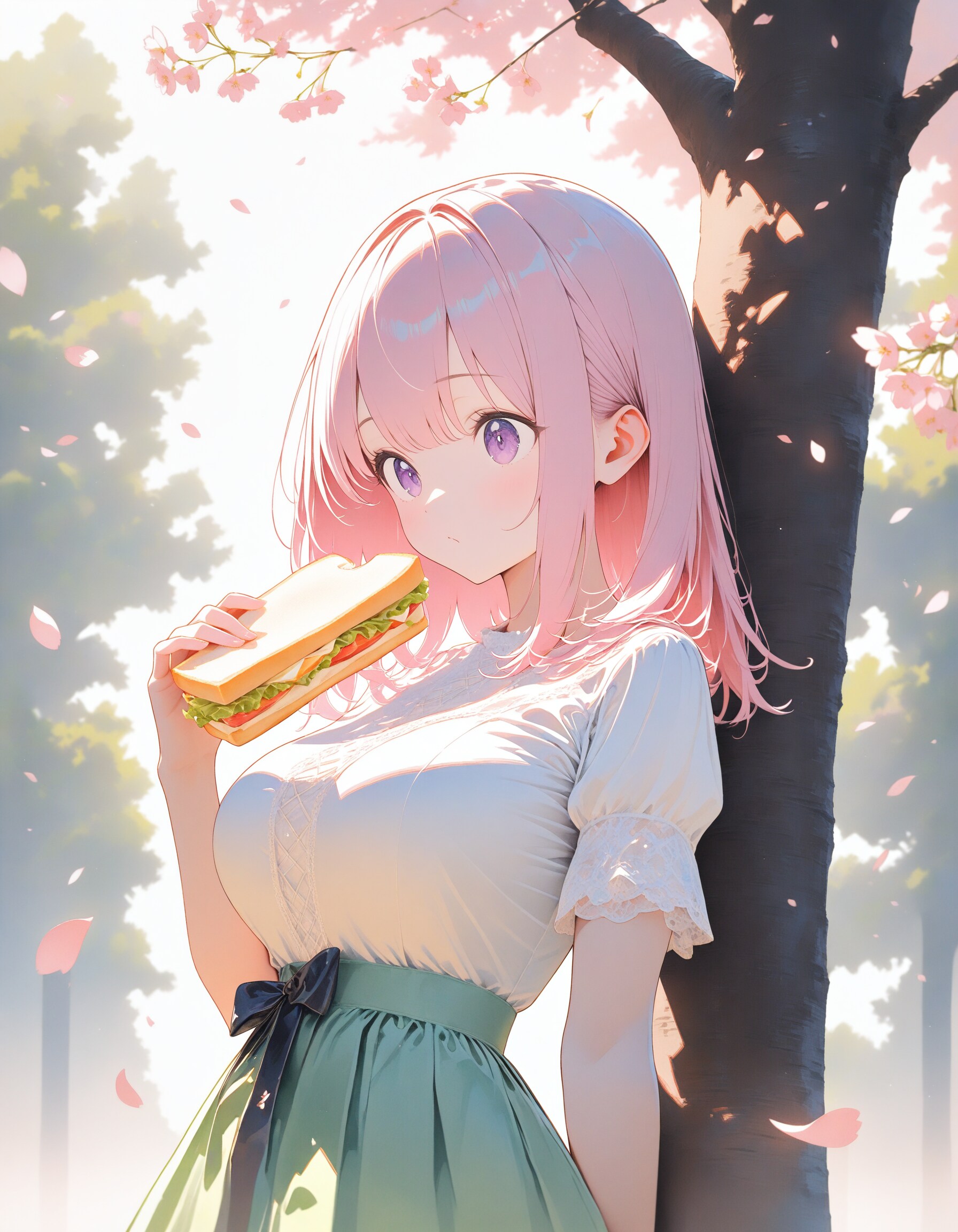 一人で花見ピクニックにきてぼっちにサンドイッチを食む姉さんとかで!