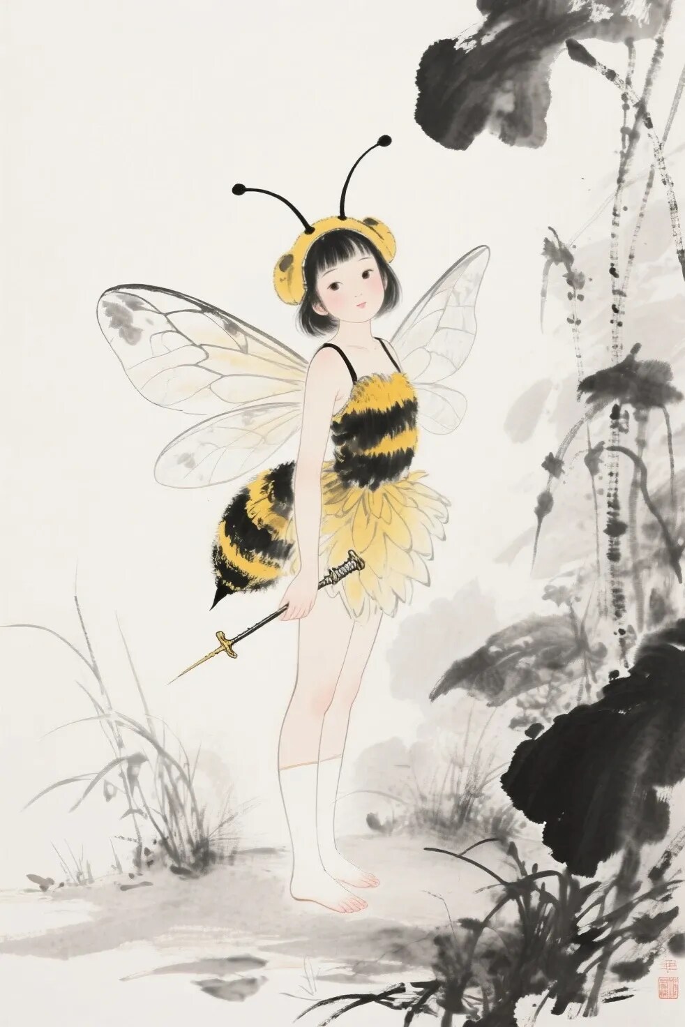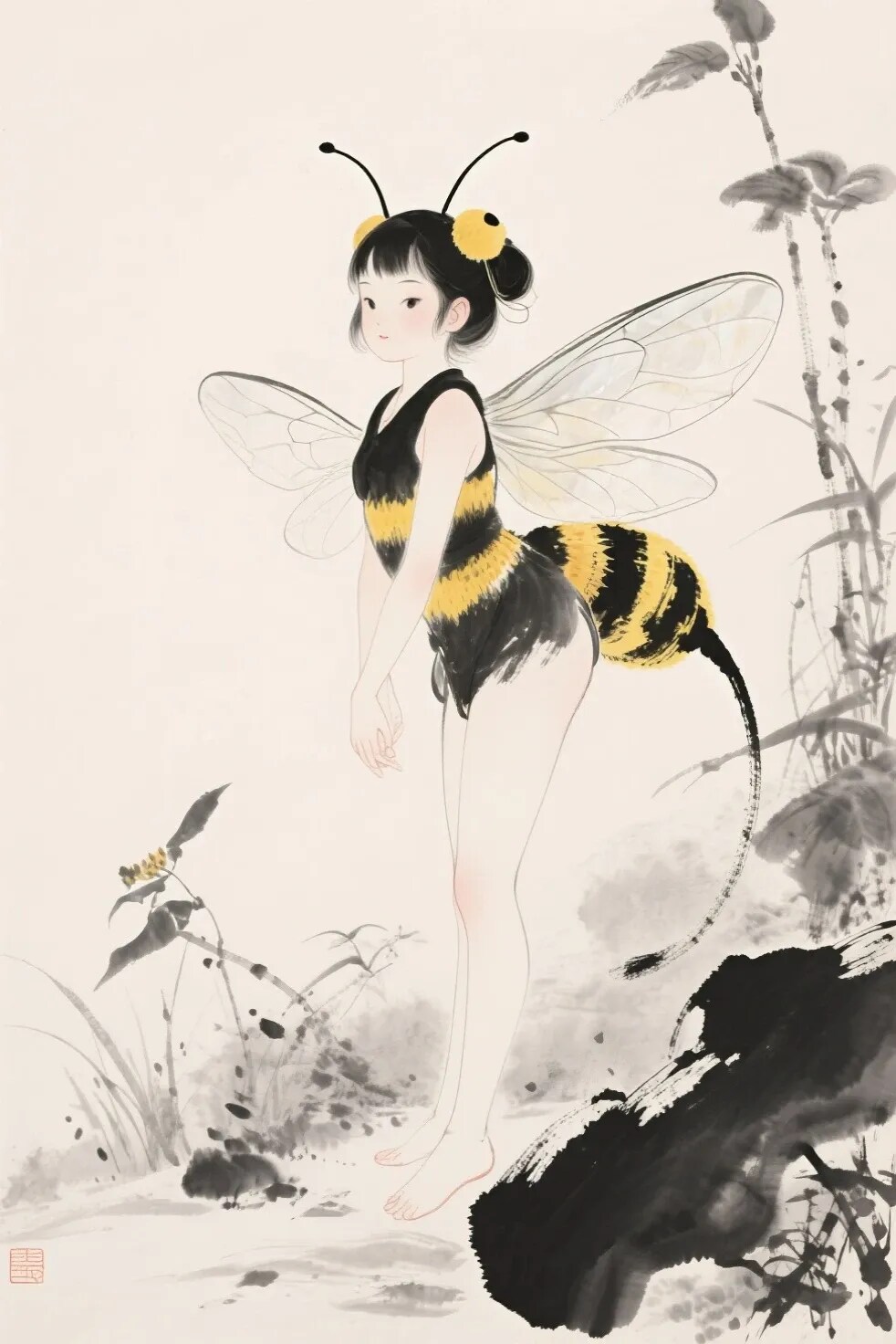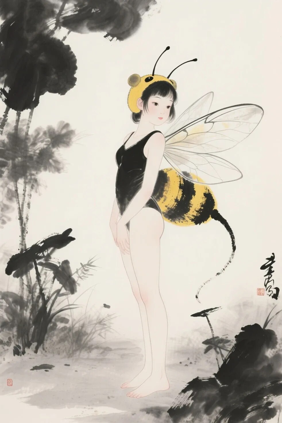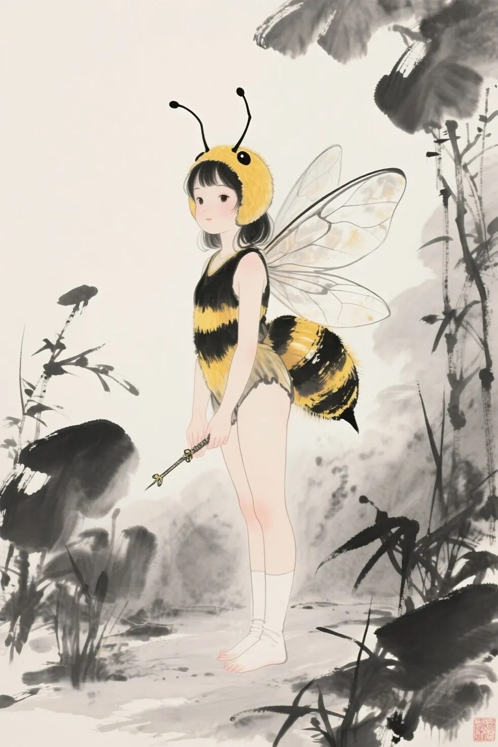 蜂のコスチュームを作ってる途中にこのユーザー企画が見えたので、じゃあ水墨画にしてしまおう、と。