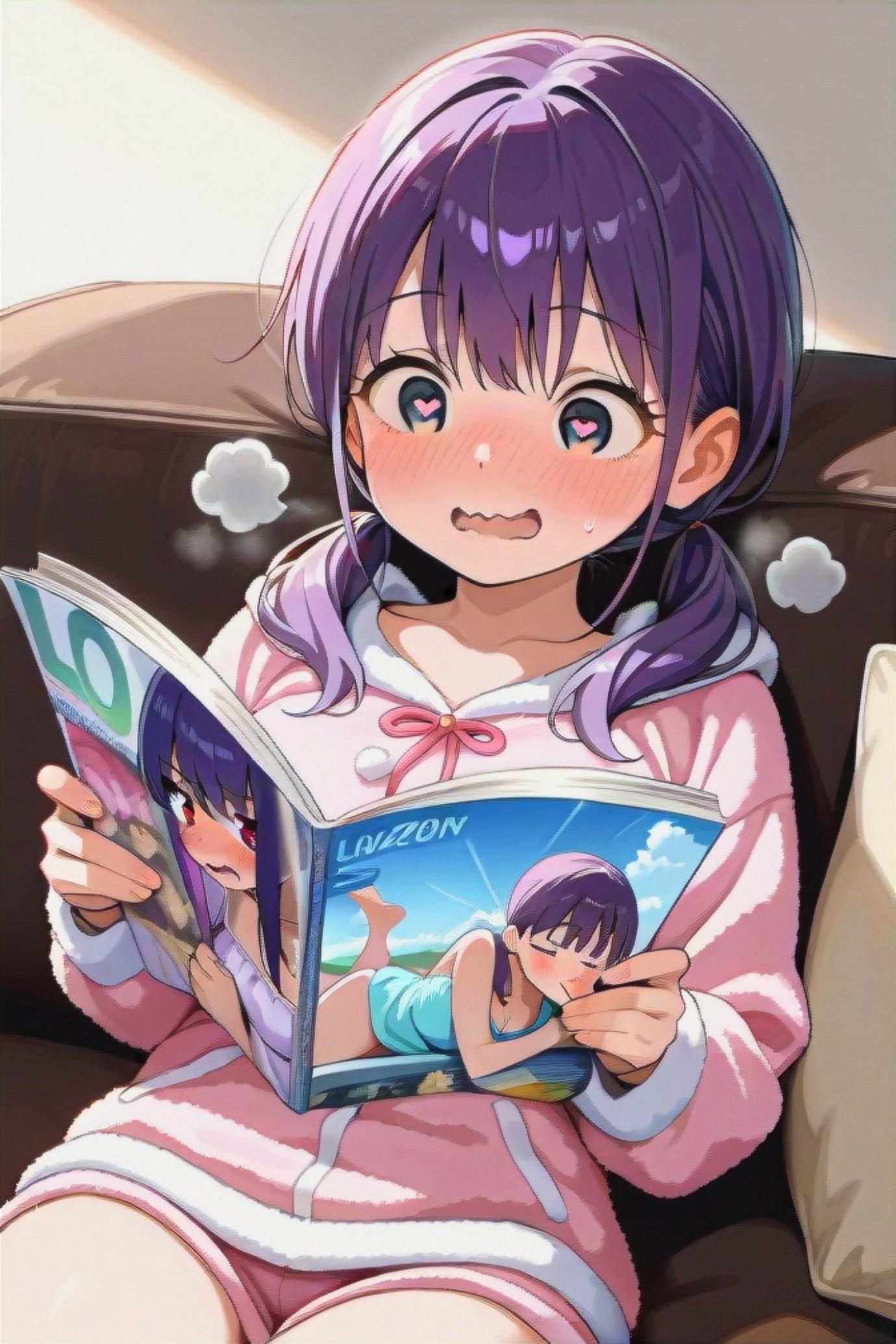 大人の絵本を読む紫髪ちゃん