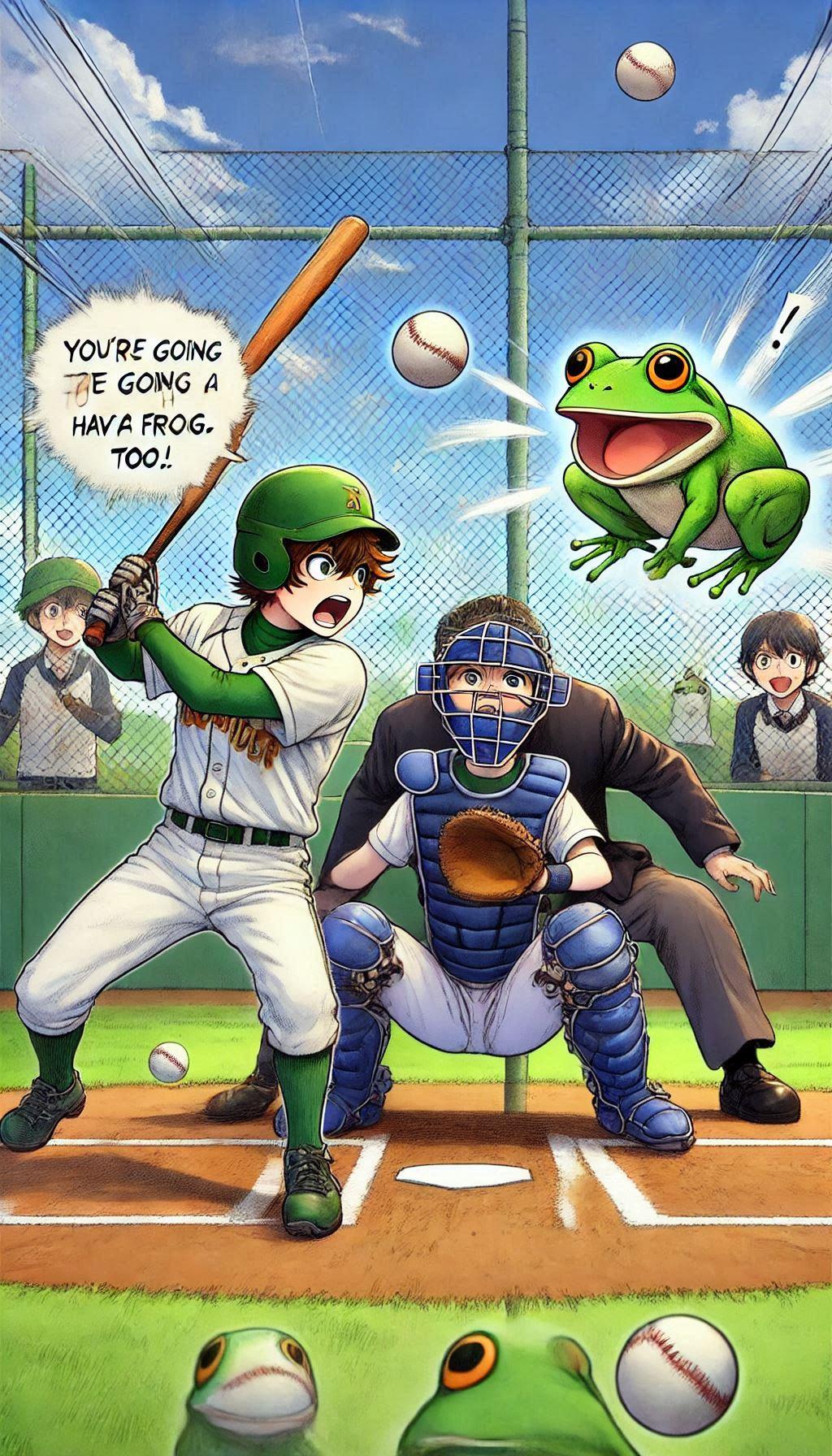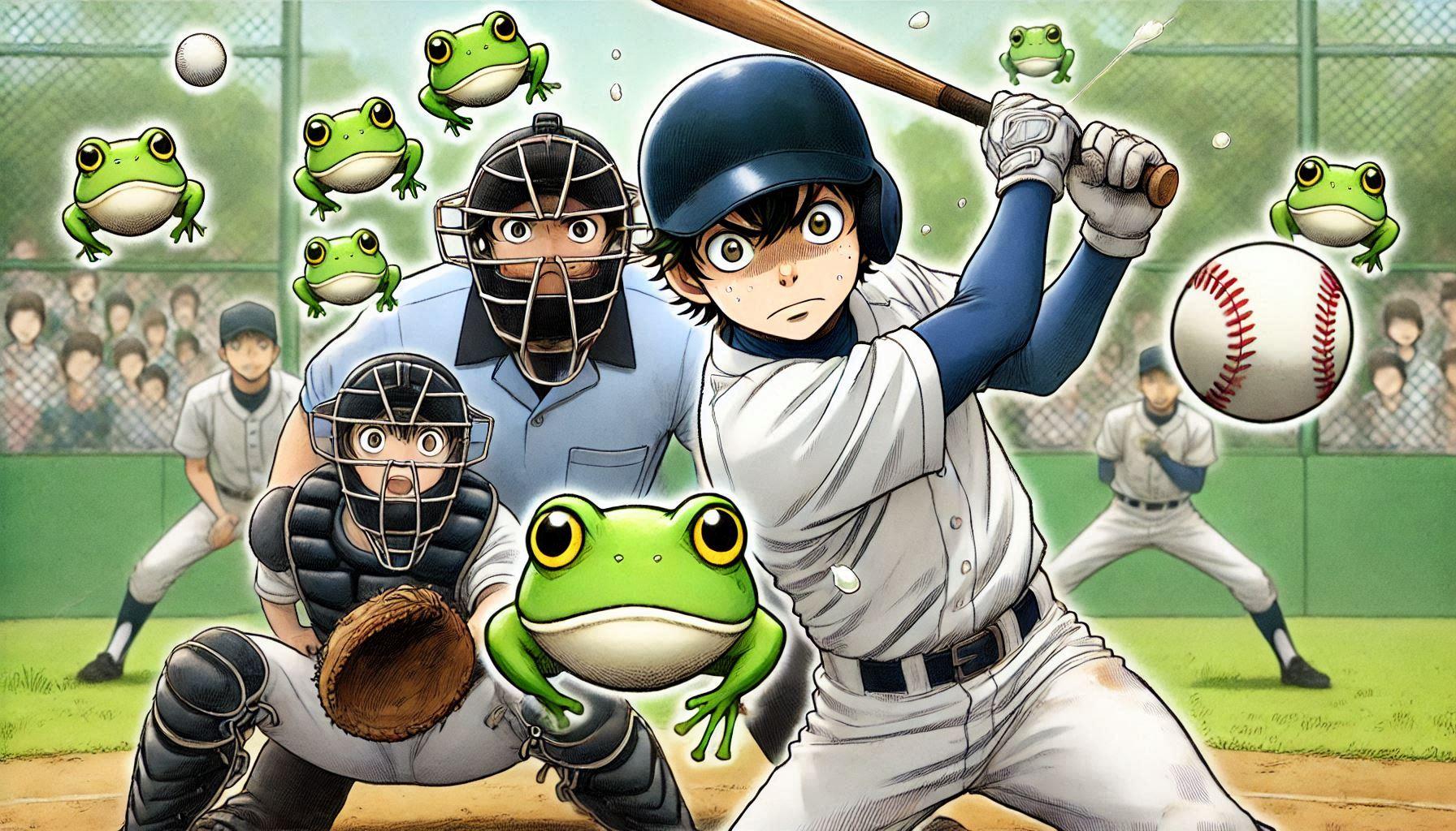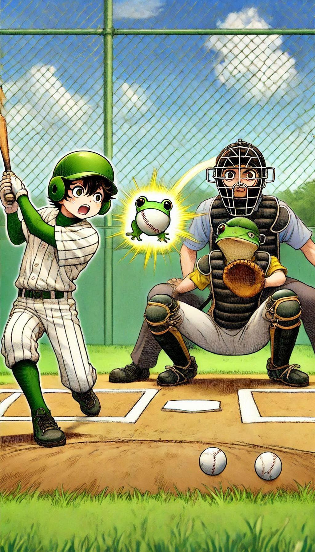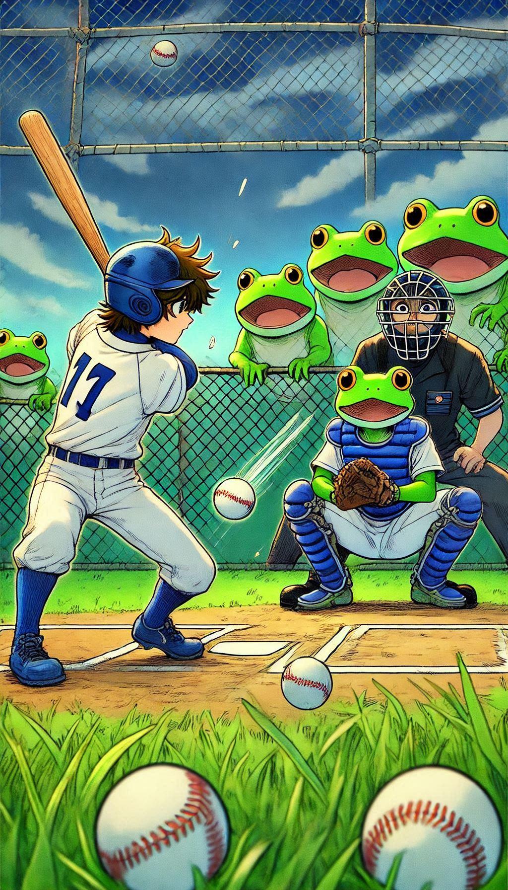 バッターの方を向かせようとしたらかえるんが出てきたー