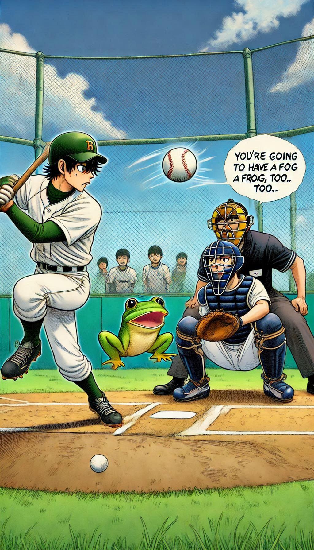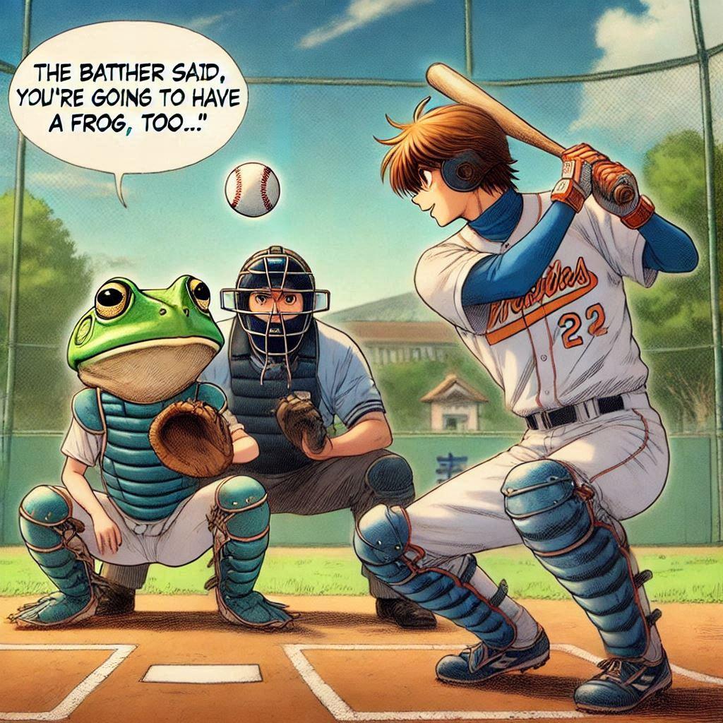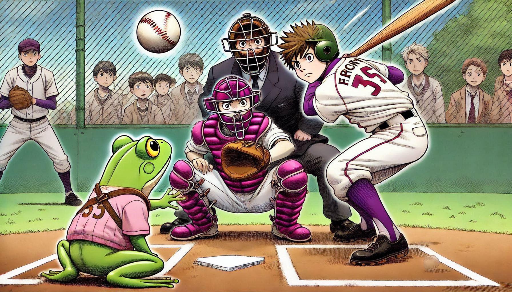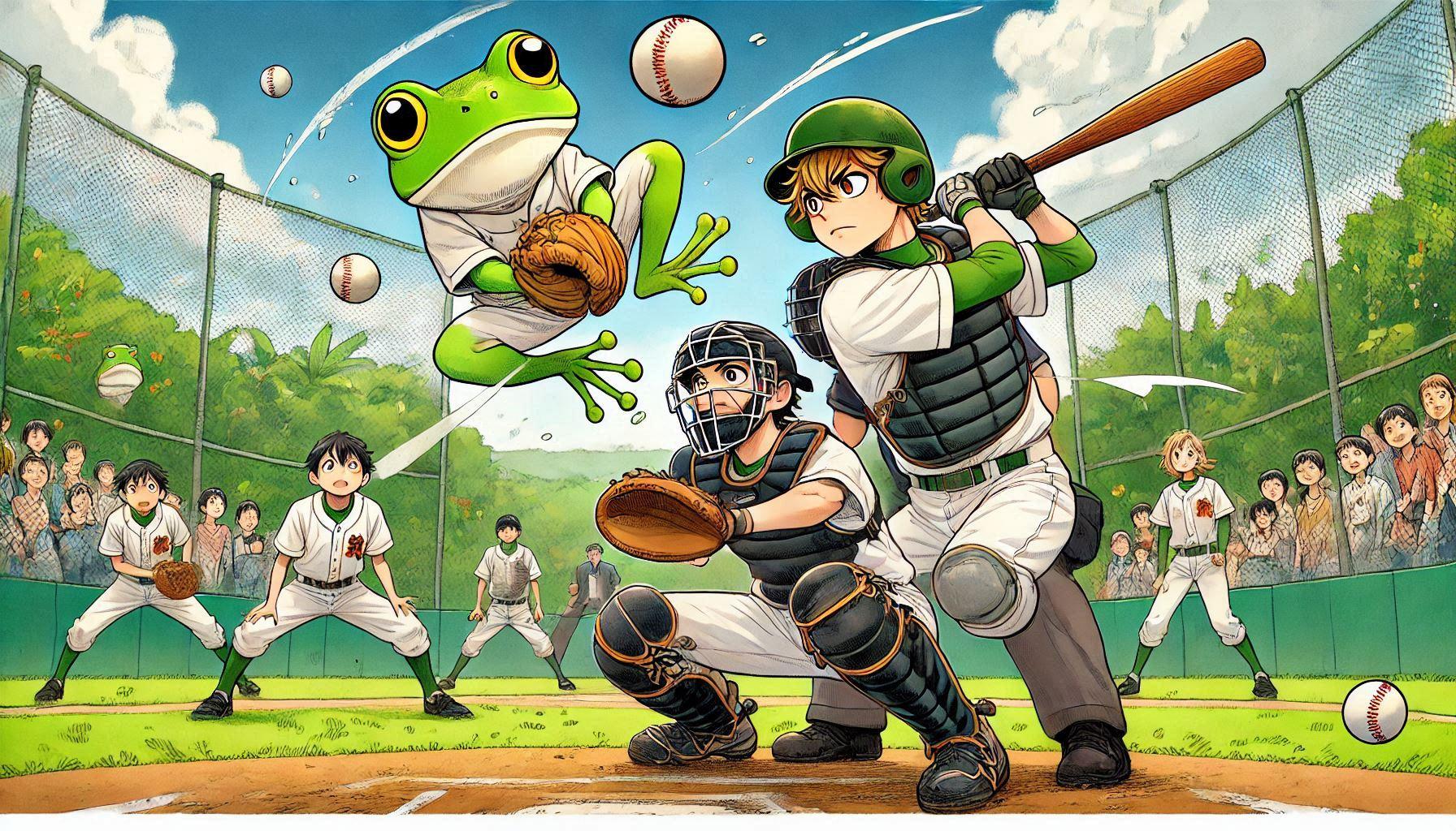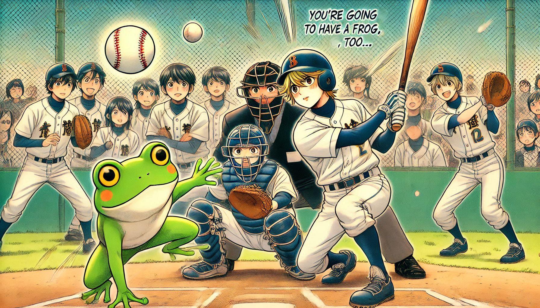 バッターの方を向かせようとしたらかえるんが出てきたー