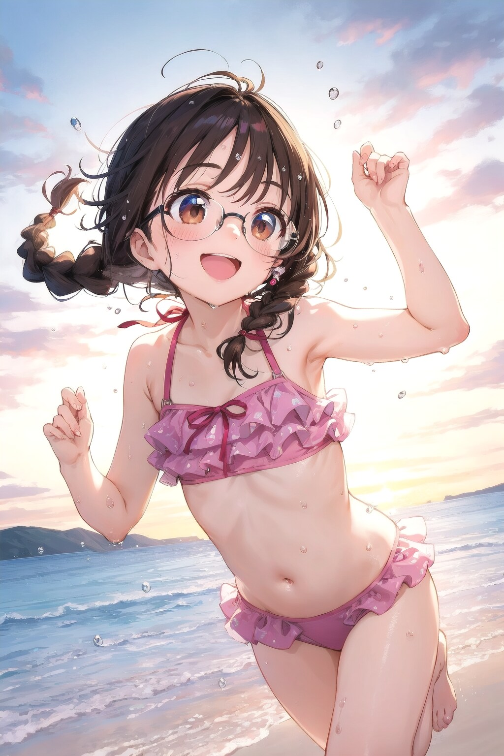 ビーチチェアで本を読んでるうちにうとうと居眠りを始めてしまった委員長ちゃんをメインに浜辺の委員長ちゃんで色々作ってみました。