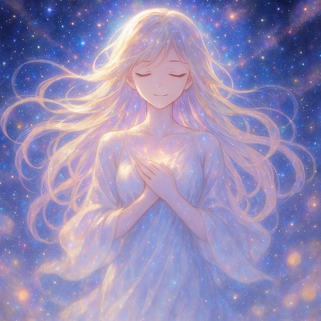 決して全知全能ではなく、人間を助けてくれたり、罰を与えたりもしないけれど、ただただ、じっと、優しく見守ってくれている、そんなイメージを、プロンプトにそのままぶつけてみました。