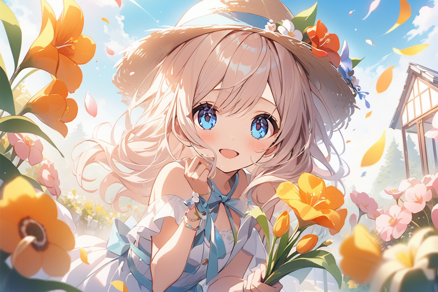 2、花束を抱えた少女